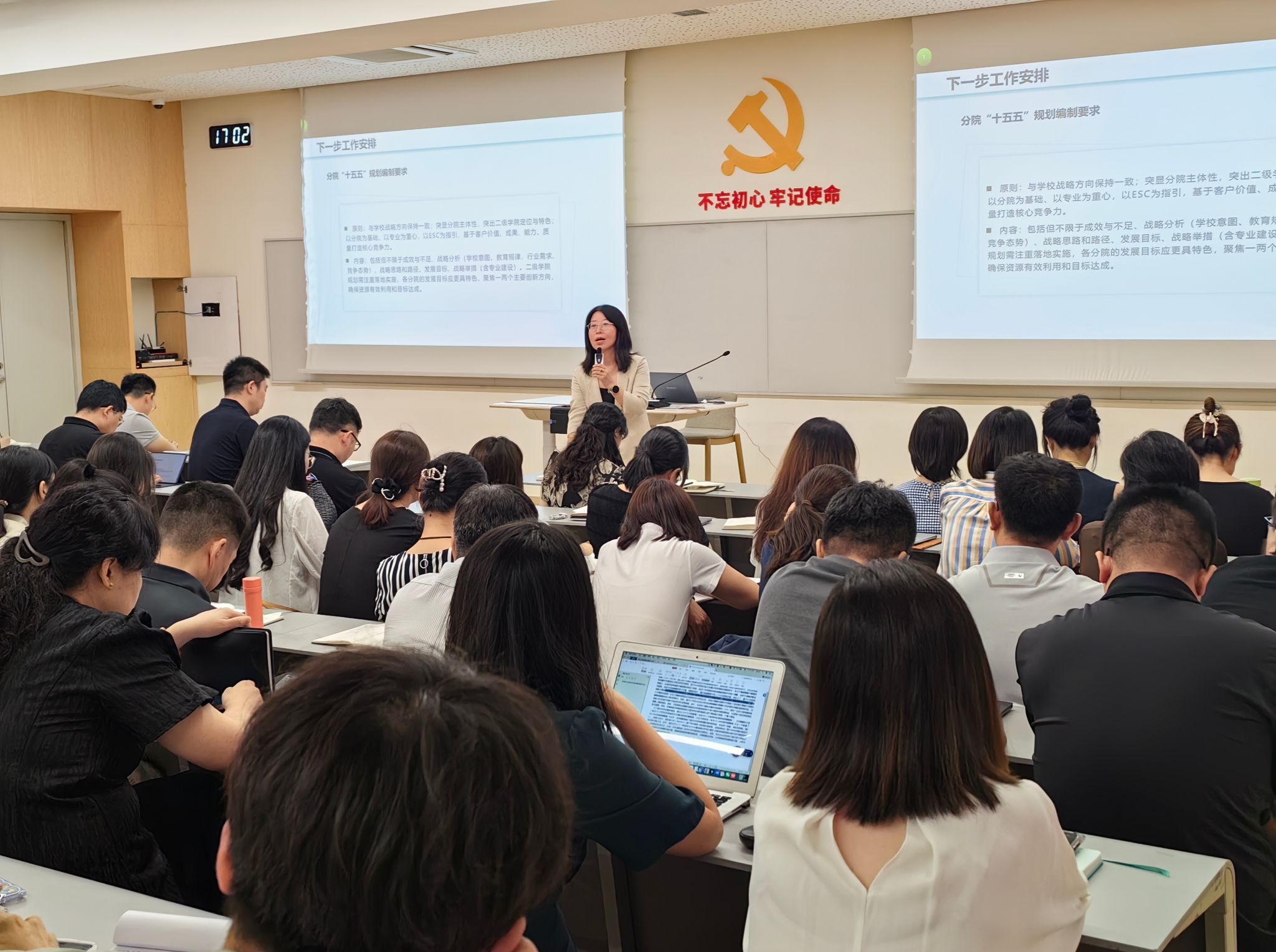 张乐芳副校长从规划落地角度提出三点要求:一是加快规划迭代速度,吸取“十四五”经验,确保8月底前完成编制,为9月校级规划发布奠定基础;二是创新规划形式,推行“自下而上”模式,突出业务先行与分院主体性,保持战略聚焦,加强整体设计;三是强化战略陪跑,由战略规划委员会、学术委员会以及相关职能部门协同支持,确保7月20日前完成规划1.0版框架搭建。