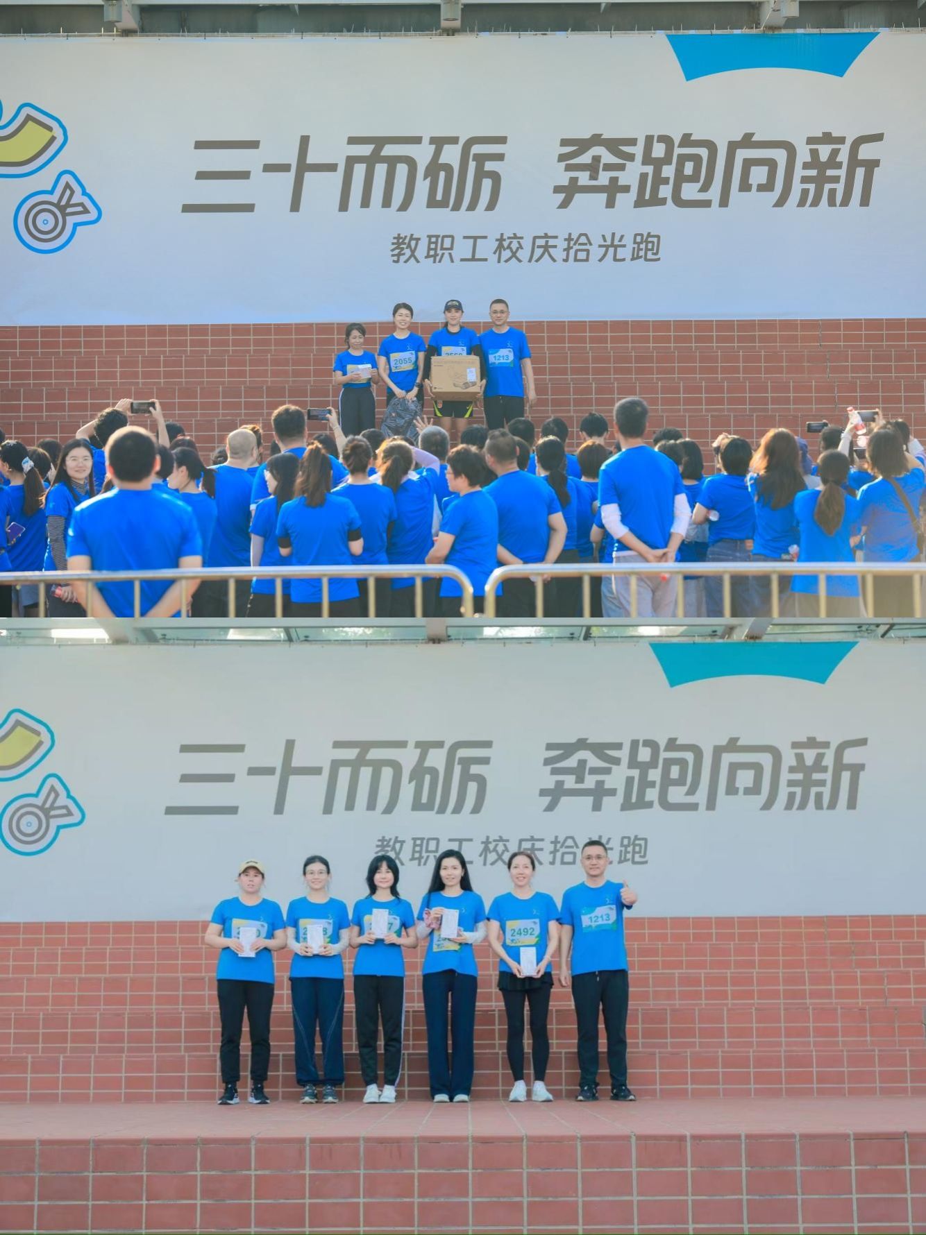 校党委书记赵国华为在欧亚辛勤工作25年及以上的欧亚拾光跑者颁奖,并现场通过大转盘抽出300名幸运跑者,2025年三十而砺,奔跑向新教职工校庆拾光跑活动现场氛围达到高潮。