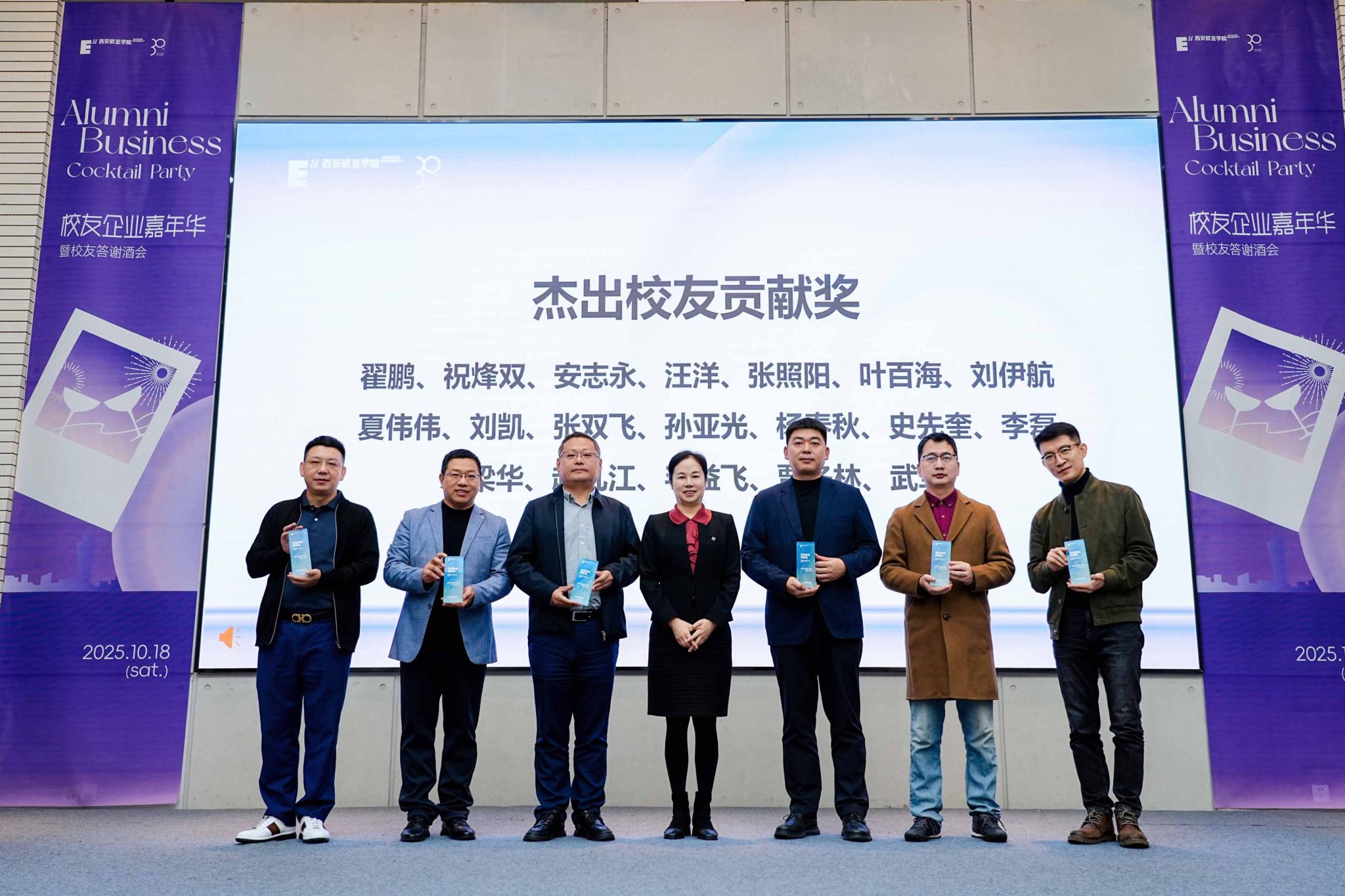 为表彰校友们对母校发展作出的贡献,活动现场特别颁发了“优秀校友分会奖”“杰出校友贡献奖”与“校友大使奖”。获奖者们或在校友组织联络、校友会活动策划中倾注心血,或在行业领域成就斐然。他们,是欧亚精神的传播者;他们的故事,激励着更多校友以行动践行“和而不同”的校训精神。