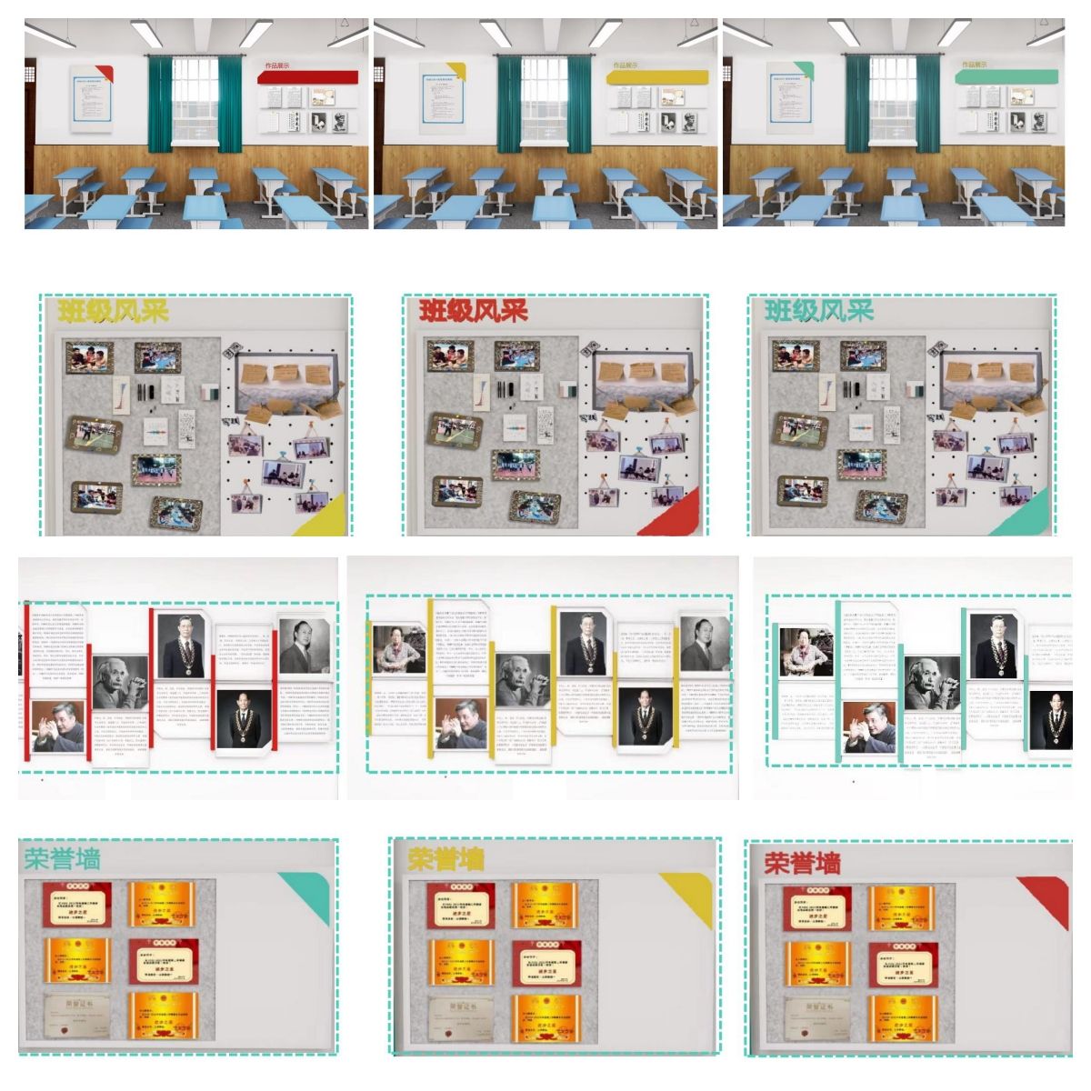 7月1日至18日,针对教室环境存在的墙皮陈旧脱落、教室展示墙面功能单一等问题,绘制设计改造方案效果图,并多次与甲方通过线上会议沟通,调整修定设计及施工方案。