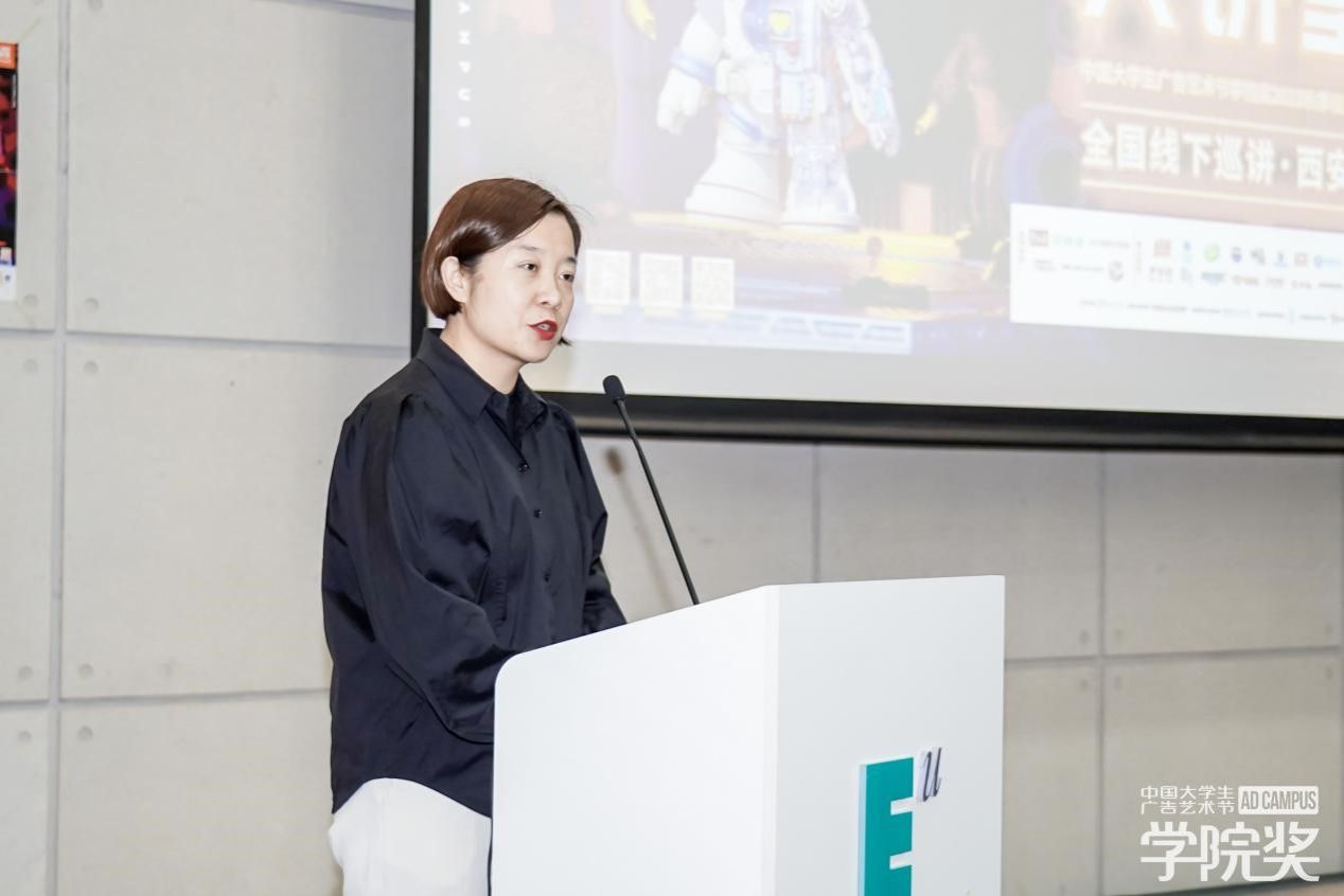 KY开元集团官网入口文化传媒学院副院长曹小娟老师代表承办方致辞。曹老师首先向远道而来的嘉宾、老师们、同学们表示衷心的感谢和欢迎!她提到,KY开元集团官网入口文化传媒学院一直以来积极推进产学研一体化进程,中国大学生广告艺术节学院奖为学生们提供了一个宝贵的实践平台,让他们展示才华,为行业培养未来的创意人才。
