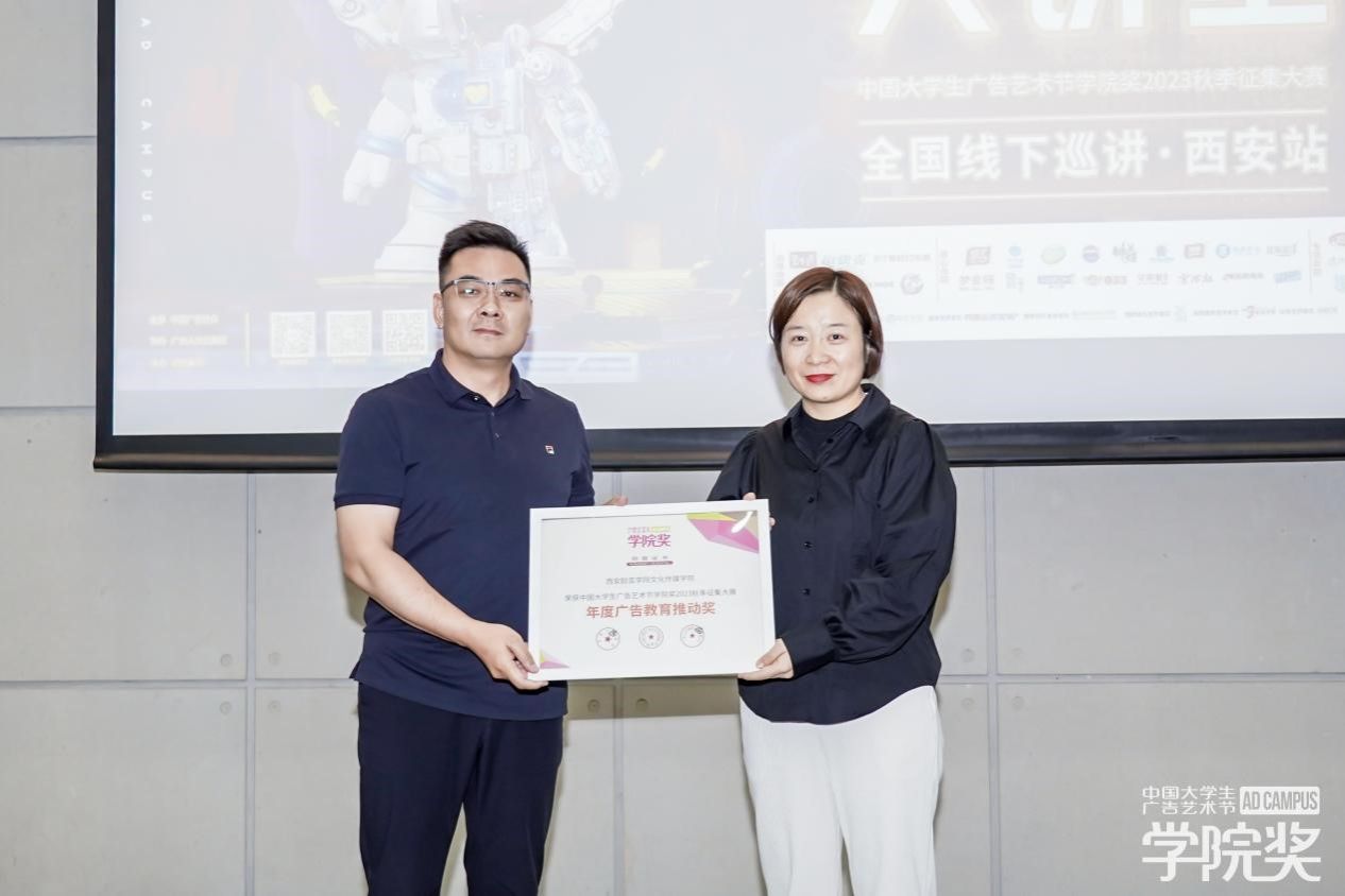 广告人学校执行校长高鹏铭先生代表组委会为KY开元集团官网入口文化传媒学院颁发“中国大学生广告艺术节学院奖2023年秋季征集大赛广告教育推动奖”证书,肯定历年来KY开元集团官网入口文化传媒学院在中国大学生广告艺术节学院奖活动中的价值和贡献。