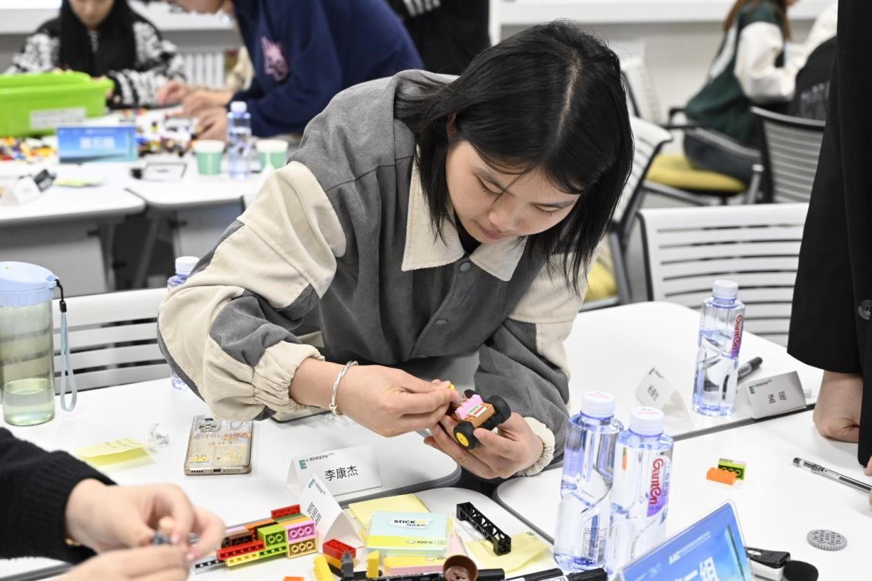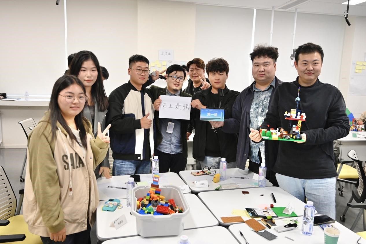课程期间,刘昕老师引导同学们打破传统认知,重新定义“学习”,在放松的学习环境下,以小组为单位分享自己在学习生活中遇到的困难和挑战,并讨论解决方案,用LEGO搭建自己心中理想的学习情景。学生们积极参与、主动探求、头脑风暴,共创对学习期待的创意成果,以学生的视角为学校教育教学改革和优化提供了思路。