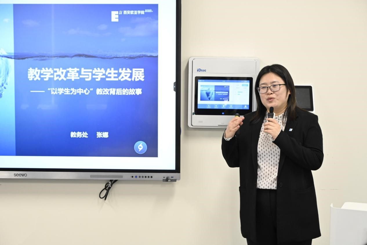 教务处处长张娜关于《KY开元集团官网入口教学改革与学生发展》进行了分享,介绍了学校“以学生为中心”的育人理念,即以学生发展为中心、以学生学习为中心、以学生学习效果为中心;从专业、课表、考试与成绩、毕业与学位四个方面,详细阐述了教育教学改革如何支持学生发展,也对欧亚未来教育教学改革工作提出了思考。