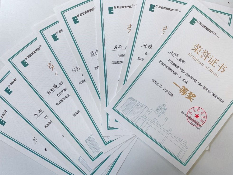 在打分结束后,依据每位老师的得分进行排名,颁发相应奖励证书。根据得分顺序,王婷老师获得一等奖,马莉等两位老师获得二等奖,刘丽芳等三位老师获得三等奖。以此为学习契机,房地产服务系将常态化开展此类教学研讨活动,发挥好一线教师是课程思政建设的“主力军”,以学科专业为基础推进课程思政集成创新,丰富自身教学方法、提高教学水平,使课堂更富趣味、内涵、深度。