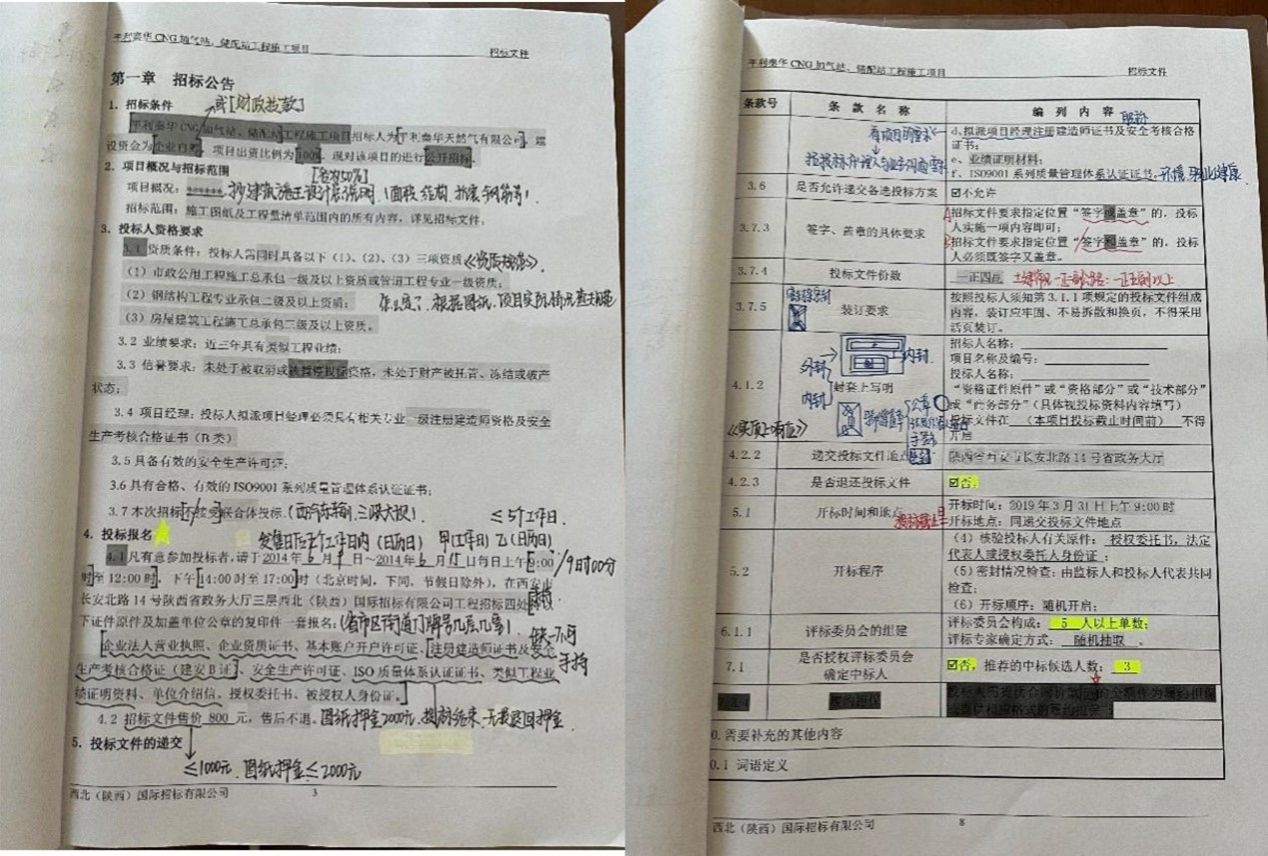 (图一)学生在真实项目招标文件中记笔记内容