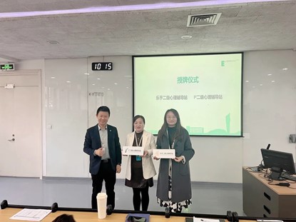 会议伊始,学生心理咨询中心主任万红对二级心理辅导站建设情况进行了介绍。学生发展处副处长张成对二级心理辅导站总体规划及运行模式进行了讲解,他对两个二级心理辅导站试点建设单位的工作开展情况给予了肯定,同时提到2024年9月学校将会在社区全面开展二级心理辅导站建设工作。随后,由学生发展处处长董杨为两个二级心理辅导站试点建设单位乐乎二级心理辅导站、I²二级心理辅导站进行授牌。