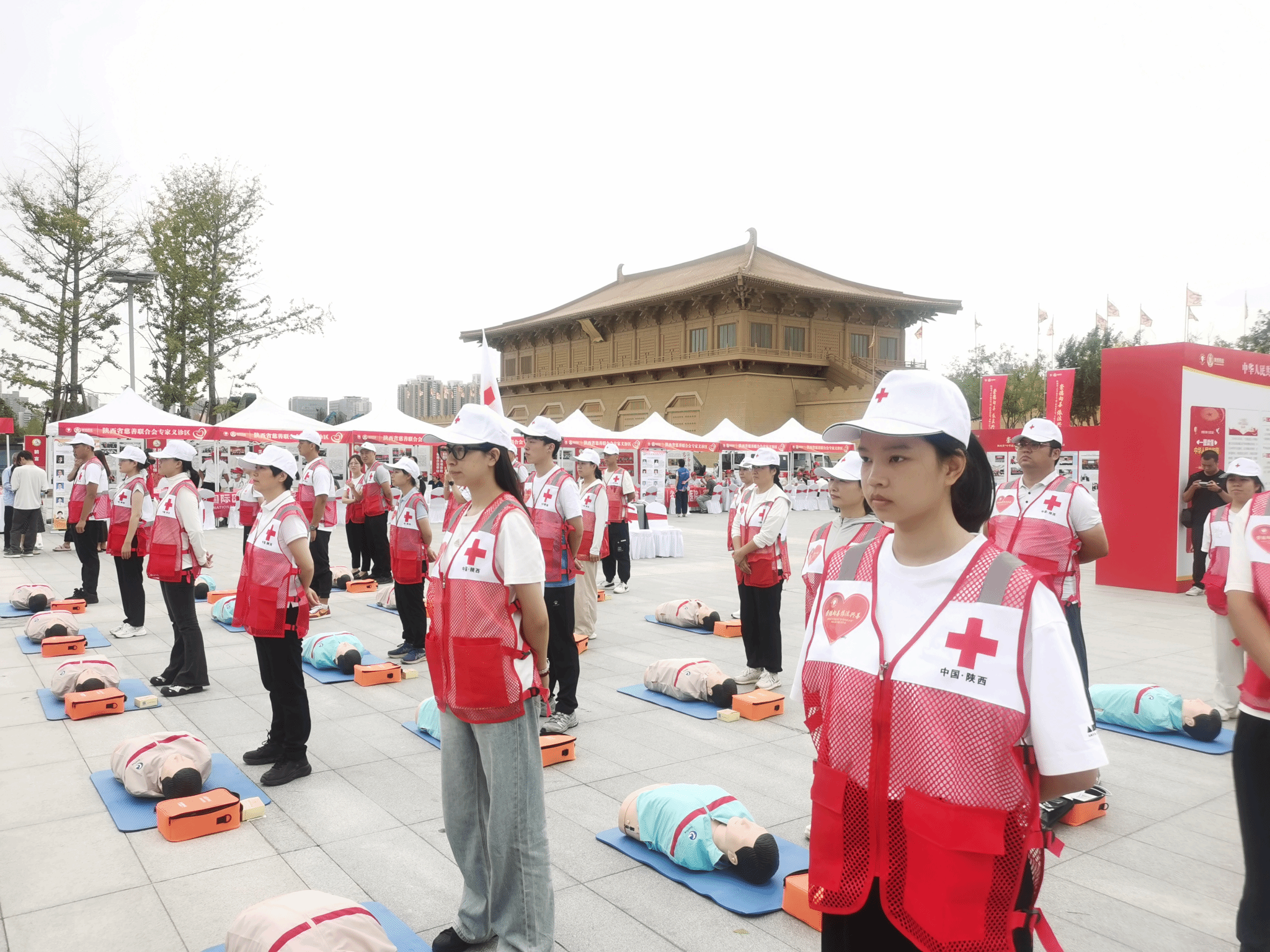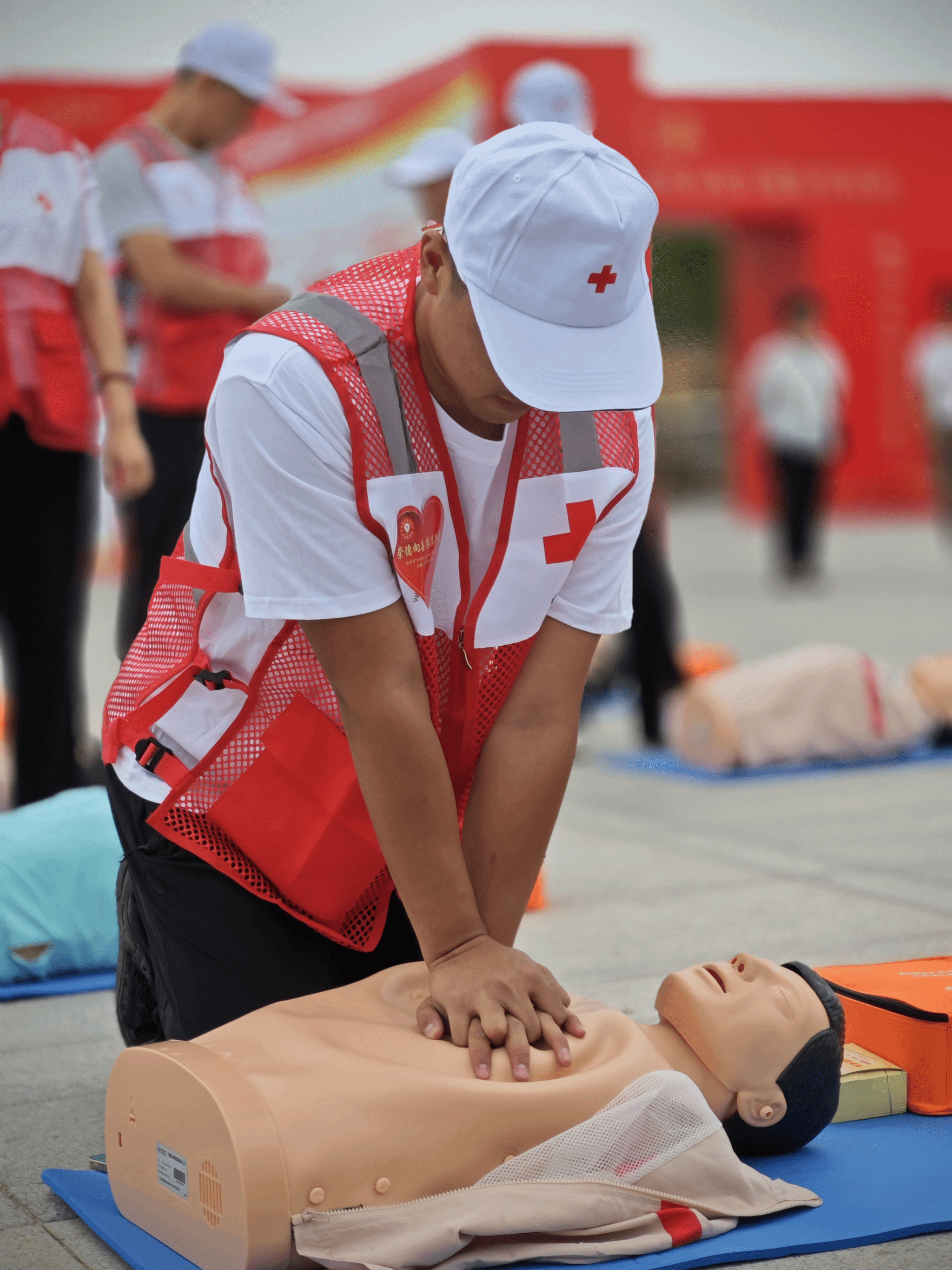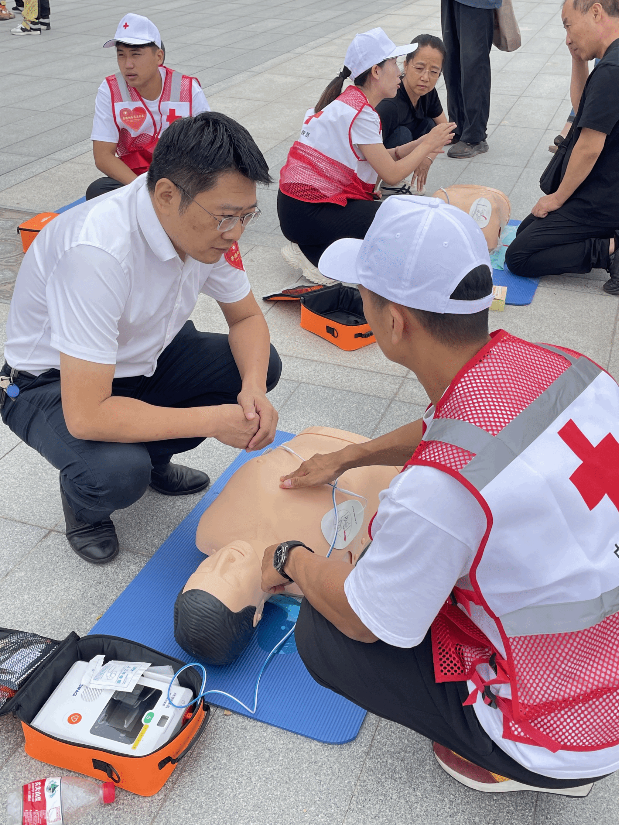 本次活动陕西省红十字会邀请了11名KY开元集团官网入口体育服务系的学生代表参加了心肺复苏(CPR+AED)展示和创伤救护(止血包扎固定)展示。