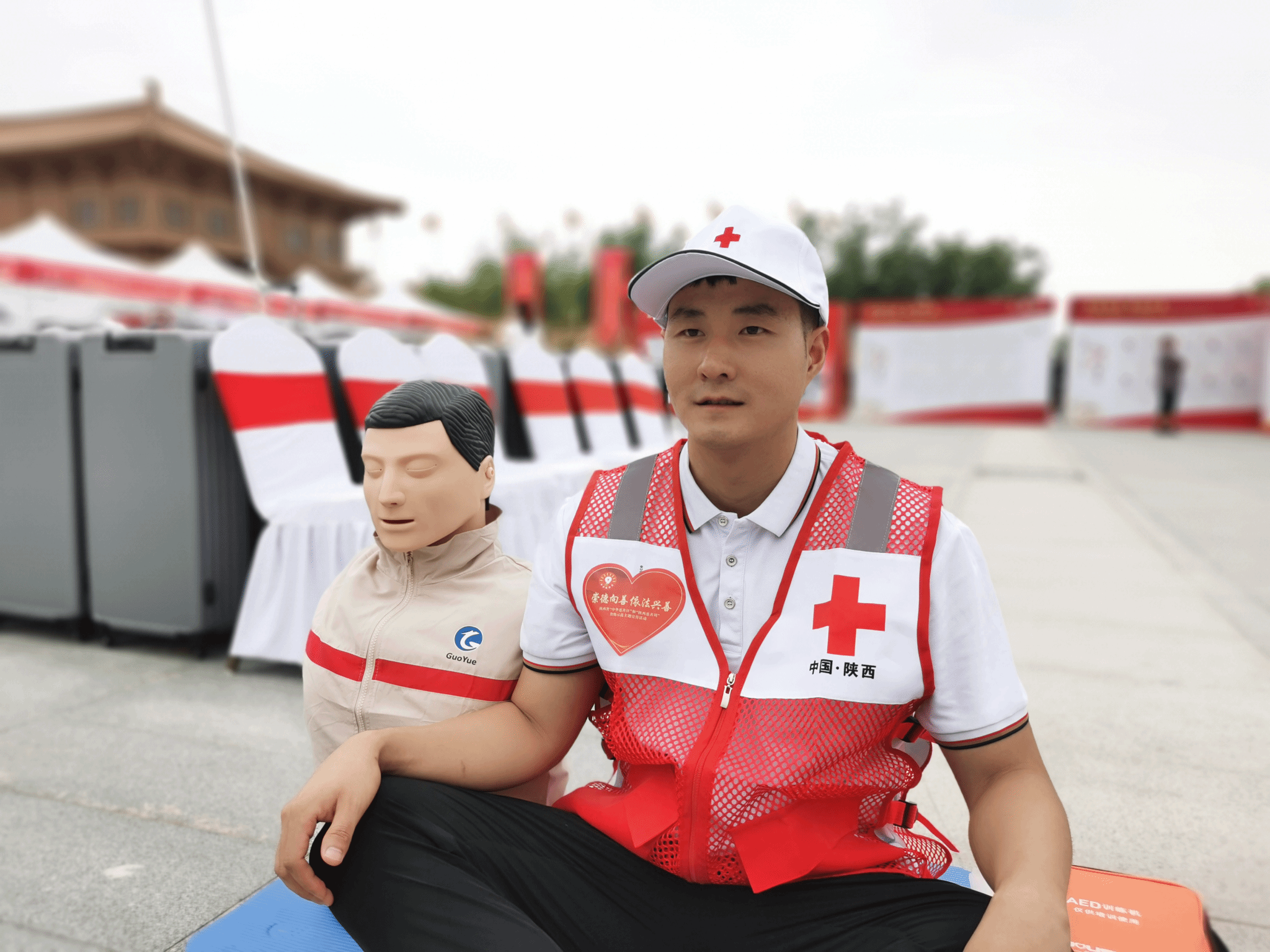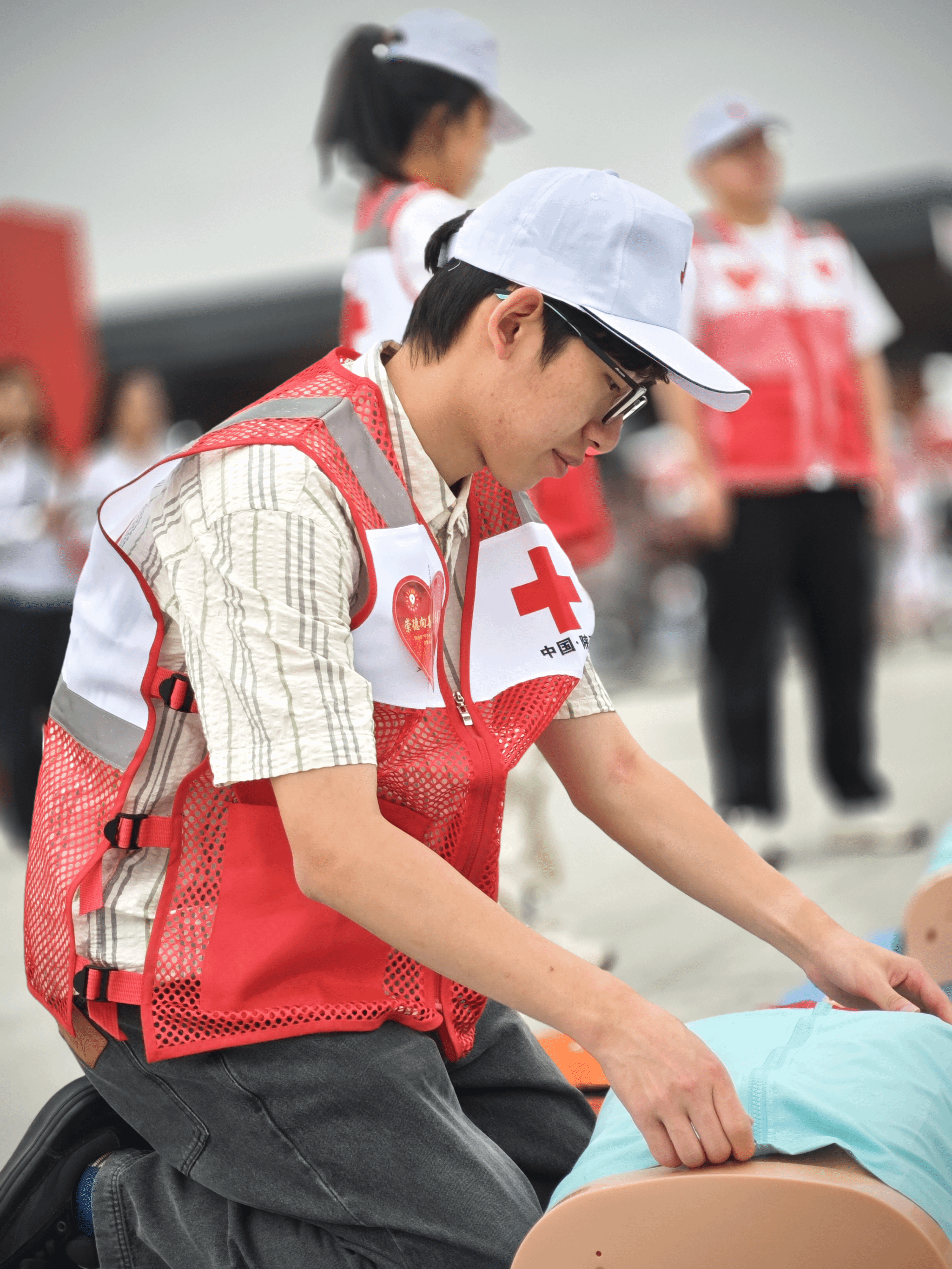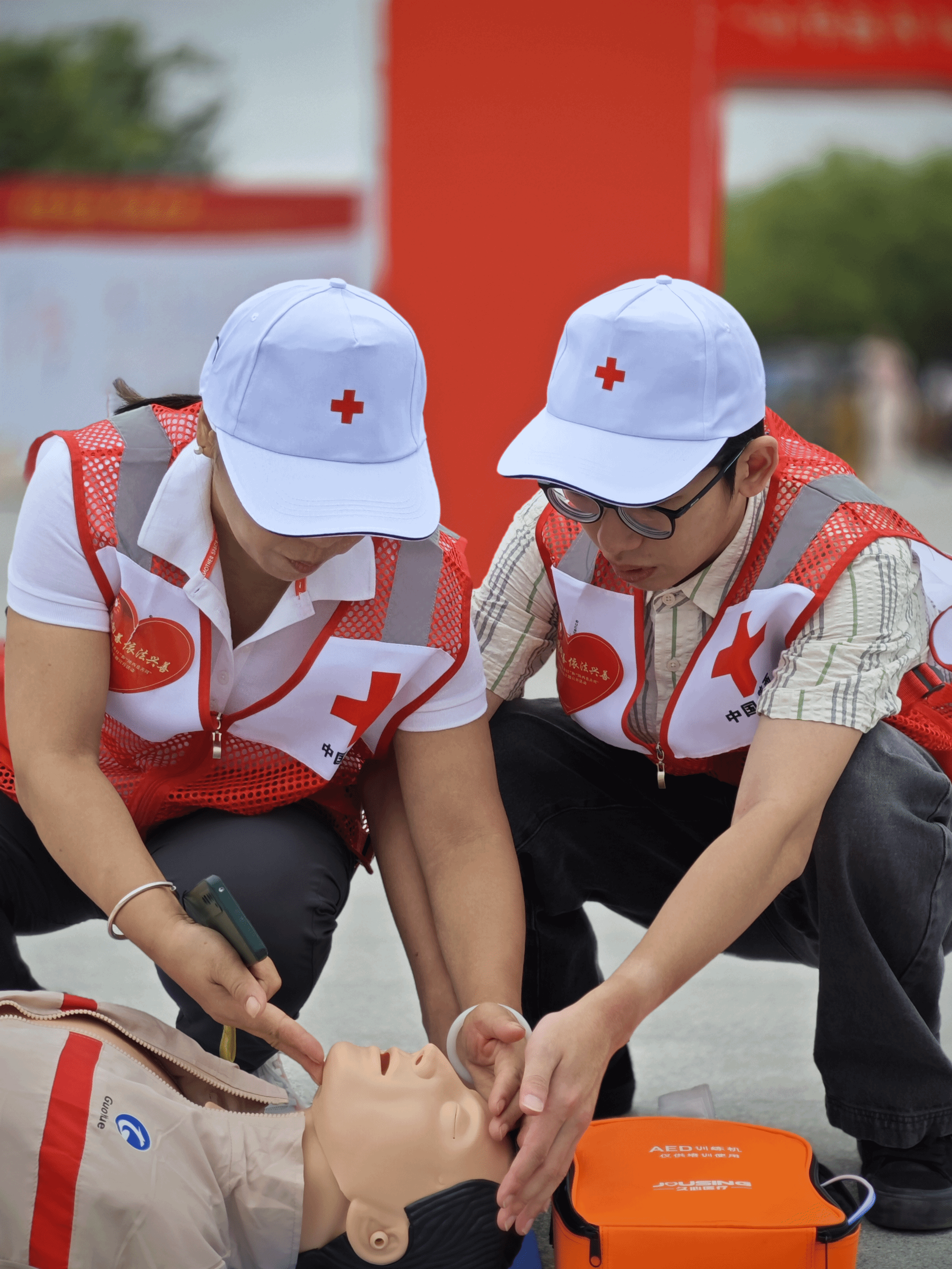 本次活动陕西省红十字会邀请了11名KY开元集团官网入口体育服务系的学生代表参加了心肺复苏(CPR+AED)展示和创伤救护(止血包扎固定)展示。