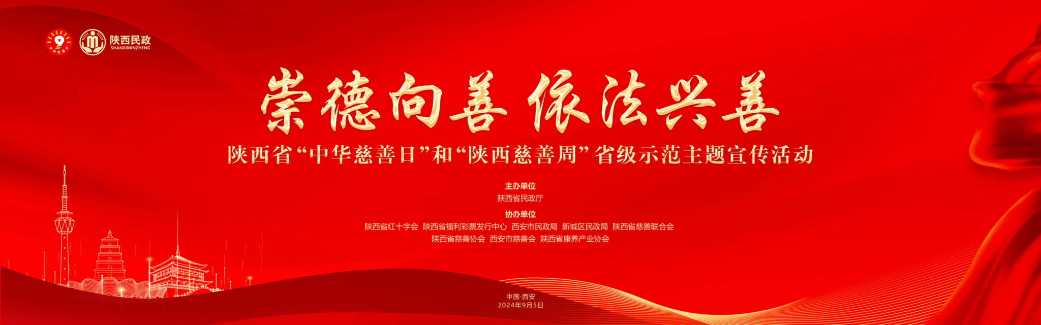 为深入学习贯彻习近平总书记关于慈善工作的重要指示批示精神和党的二十届三中全会精神,更好地贯彻落实新修改的慈善法,陕西省民政厅拟于9月5日上午,在西安市一带一路银发经济产业园户外广场,组织开展了以“崇德向善 依法兴善”为主题的省级示范主题宣传活动。
