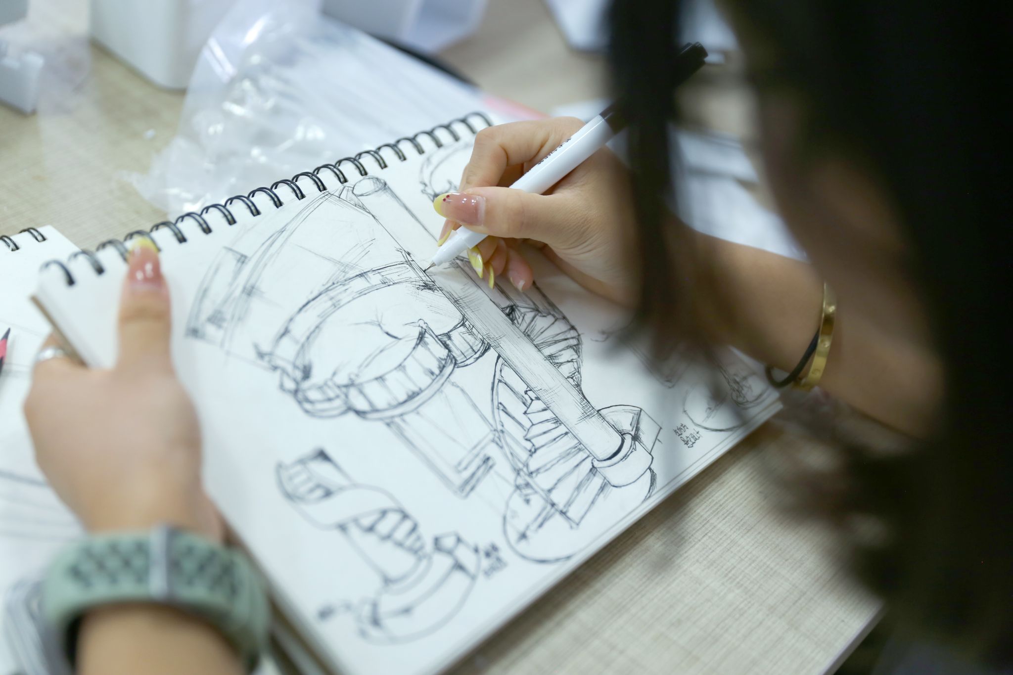在草图绘制阶段,需要考虑设计的功能性、美学性和创新性,以及如何将这些元素融入到设计理念中。通过绘制草图,学生将抽象的想法具体化,尝试不同的设计方案和表现形式。
