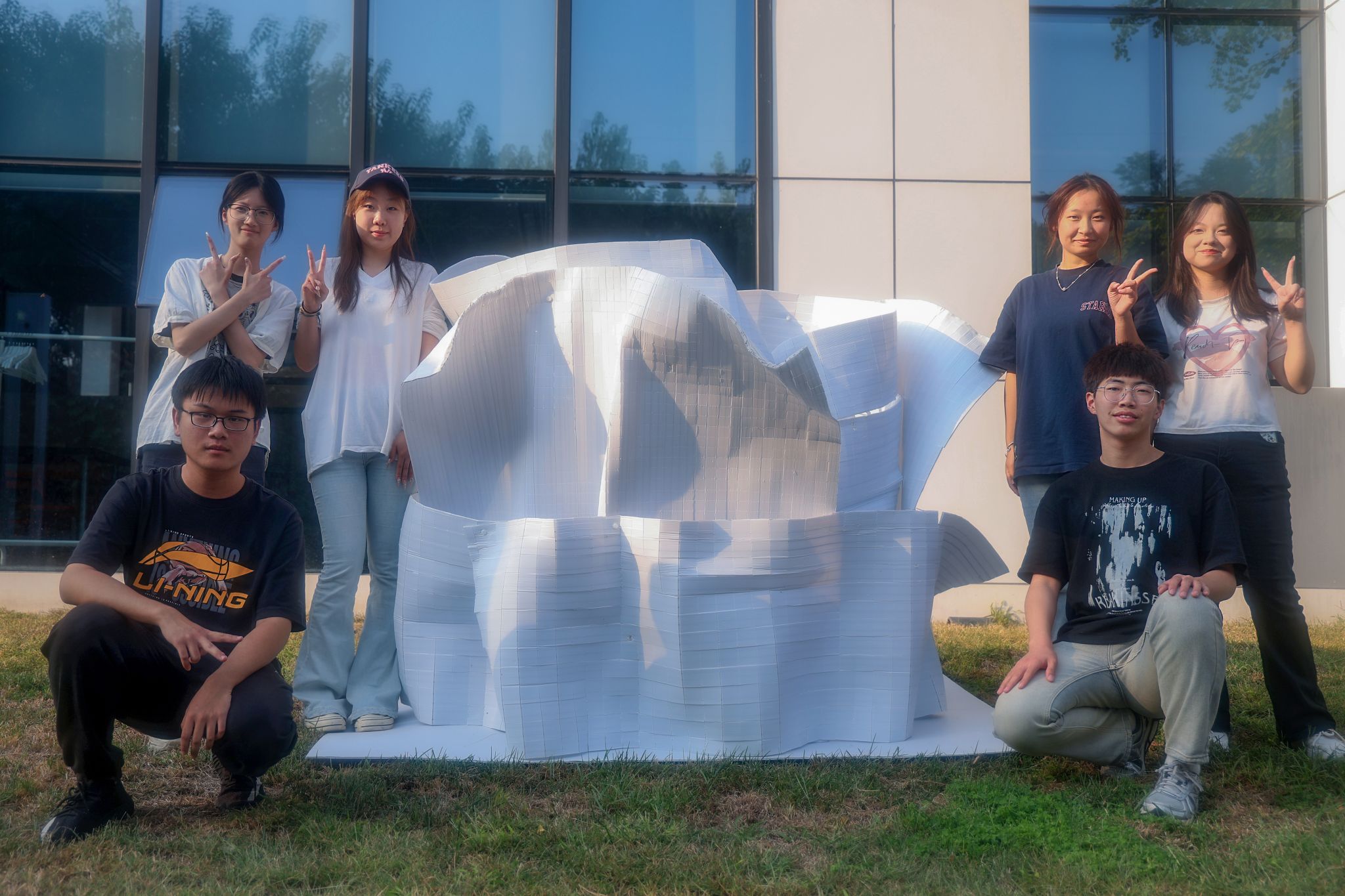 户外搭建阶段学生将设计概念转化为实体空间,借助工具的使用、给定材料的分析、结构的设计实现,完成了创意性的空间搭建。课程也鼓励学生展现领导力、执行力以及沟通协作,不仅锻炼学生的动手能力,也提升团队协作技能。