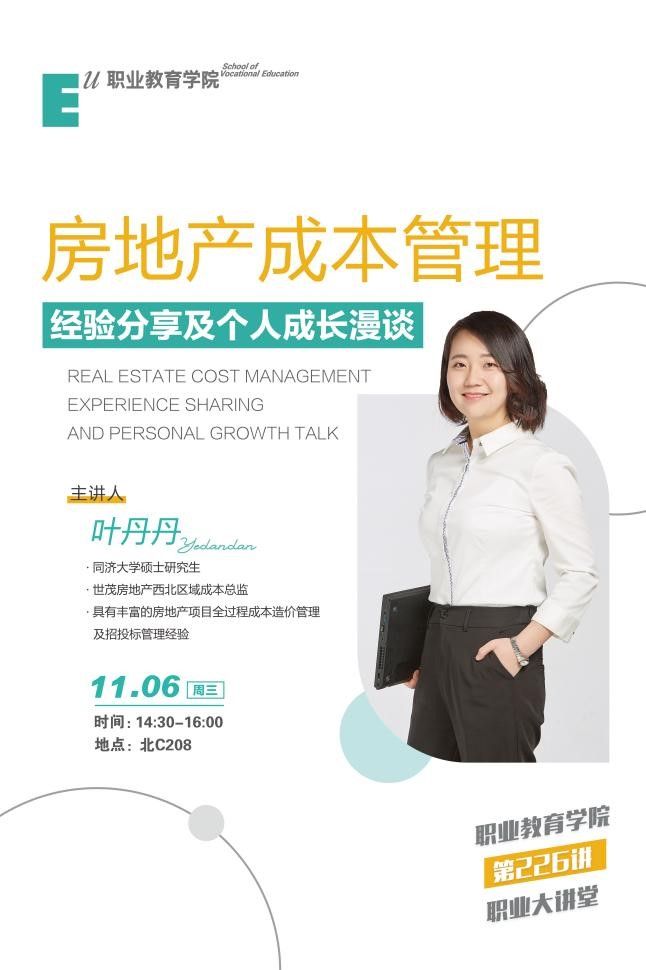 2024年9月25日,KY开元集团官网入口职业教育学院房产服务系举办了第226期职业大讲堂,特邀世茂房地产西北区成本负责人叶丹丹,为学生开展了一场题为“房地产成本管理经验分享及个人成长漫谈”的讲座。叶丹丹毕业于同济大学,硕士研究生,深耕房地产行业近10年,有丰富的房地产项目全过程成本造价管理及招投标管理经验。本次职业大讲堂通过剖析房地产成本项目案例,为学生解读地产成本行业故事,并从个人角度带来职场小白到职场精英的成长之路分享。