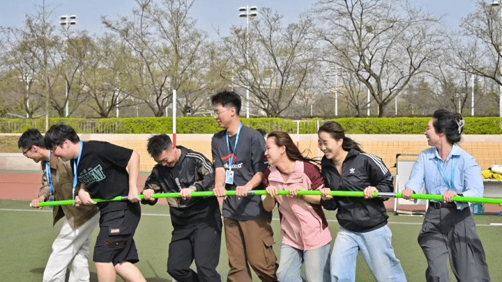 活动首日,操场成为欢乐的海洋。学生们踊跃参与各项赛事,既有个人技巧的比拼,也有团队协作的较量。国际青年社区举办的旋风跑、lvy青年社区举办的拔河比赛强调团队协作与策略。Xdea青年社区举办的挥拍“Xdea” 健康羽你有约让青春在奔跑与跳跃中尽情释放!操场的另一头,正在如火如荼进行着趣味沙包赛,六人一组攻防对决,躲避方接沙包可“续命”,现场报名火爆。一名参与沙包赛的学生表示:“比赛不仅释放了学业压力,更让我体会到团队合作的力量!”。