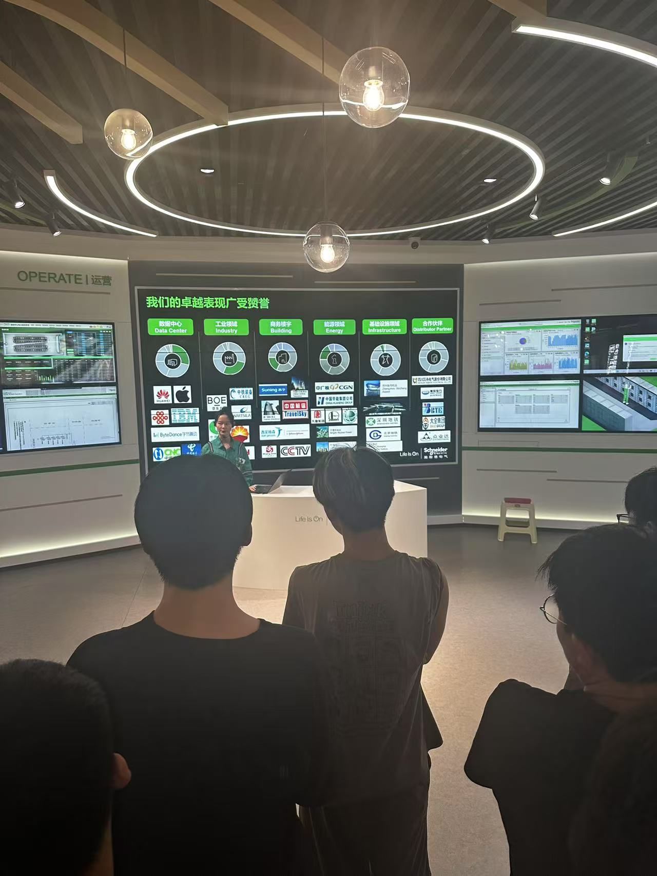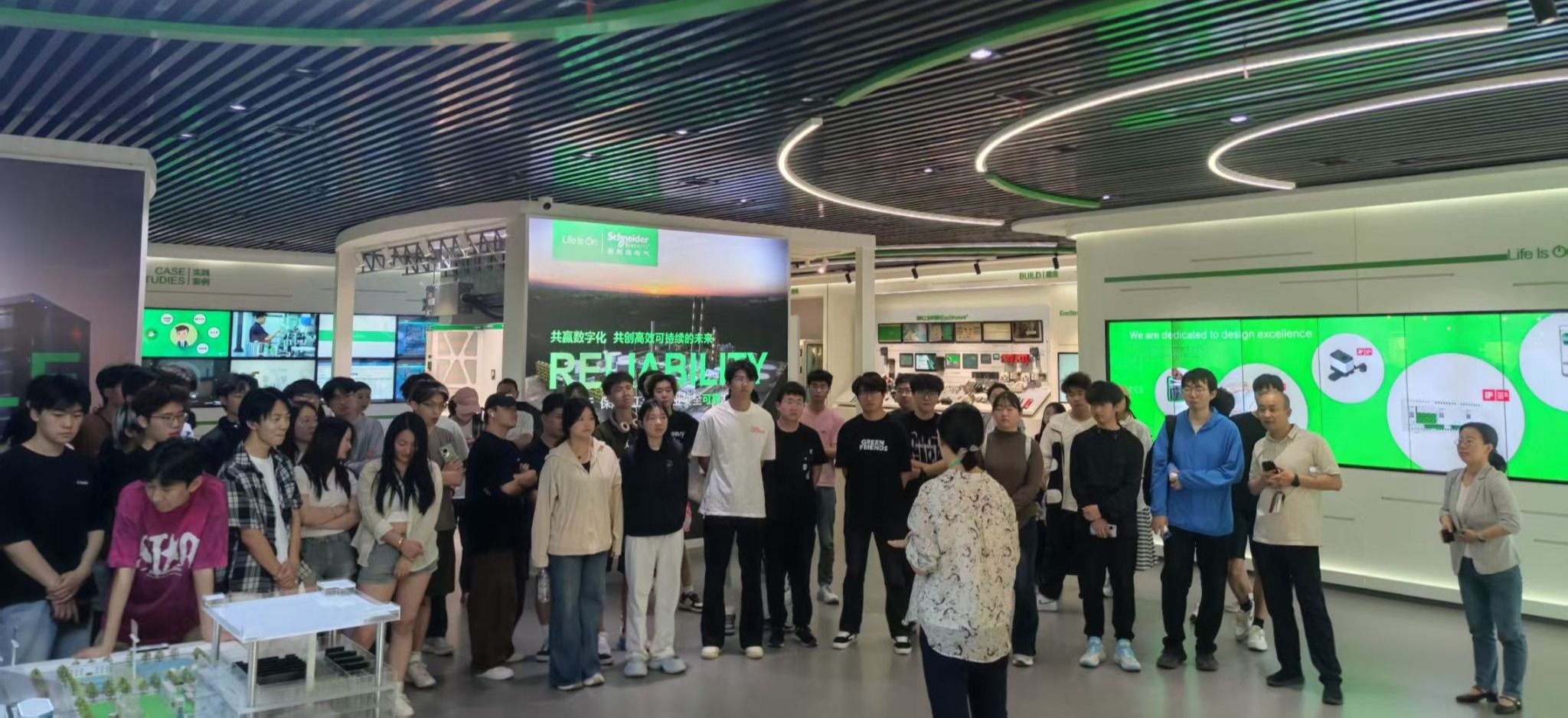一走进施耐德电气的大门,同学们便被其现代化的企业氛围深深吸引。在企业工作人员的引领下,大家首站抵达企业展厅。展厅内陈列有先进的电气设备模型、智能电网解决方案模型,以及数字化能源管理系统,琳琅满目,令人目不暇接。工作人员深入讲解了施耐德电气在能源管理、自动化控制、智能制造等领域的创新成果,从高效节能的电气产品到智能互联的工业系统,每一项成果都蕴含着无数劳动者的智慧与辛勤付出。