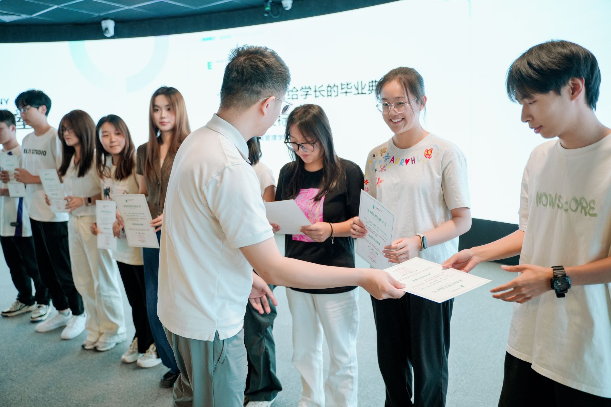 现场对统本供应链 2023 级《模拟招投标》项目进行成果验收,为荣获“最佳投标方案”“最佳组织奖”“综合表现优秀奖”“最具竞争力供应商奖”的学生团队进行表彰,以赛促学,深度检验产教融合育人成效。