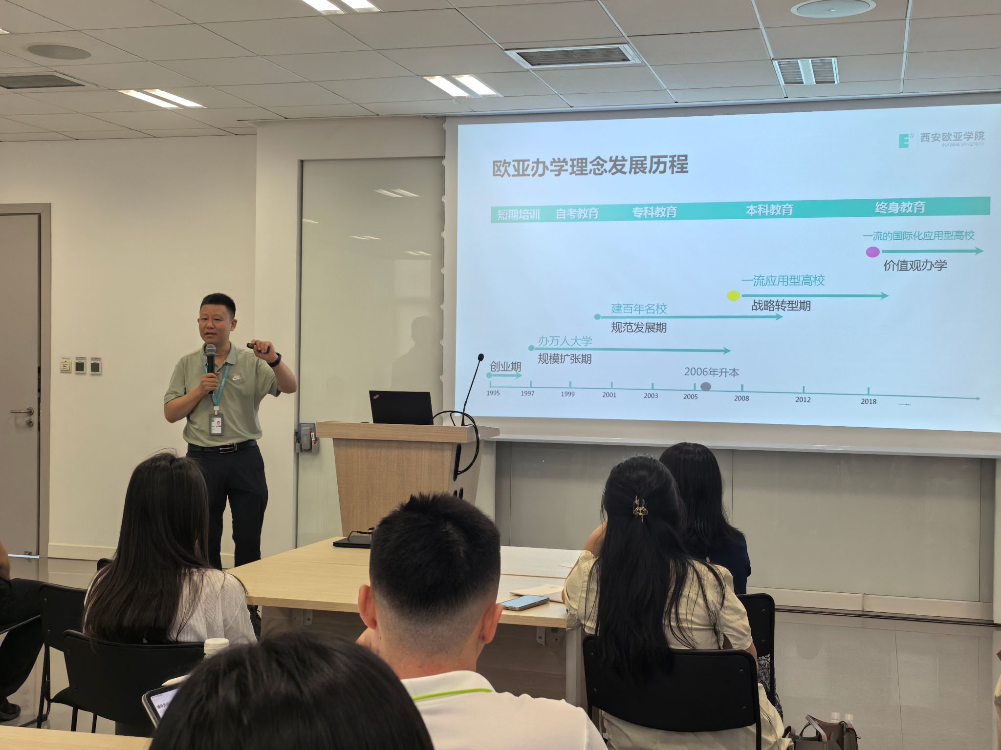 学生发展处处长董杨老师以“以学生为中心的学生事务探索”为题,深入解读了欧亚学生事务的核心理念,让辅导员们明确了“服务学生成长”的工作主线;学生发展处处长助理李嘉瑜老师则详细介绍了青年社区育人模式,为新生辅导员与新员工明晰了社区场景下的育人思路。