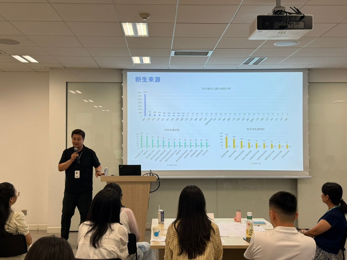 为确保2025级迎新工作顺利开展,学生发展处副处长张成老师详细介绍了2025级迎新工作及入学教育安排,图文信息中心翟晓林老师则针对迎新系统的使用对新生辅导员进行了细致解读与操作,指导学生信息录入实操;健康服务中心杨定老师对传染病预防及新生体检工作进行详细说明。专题业务模块的培训,为新生辅导员有效开展业务工作指明了思路和流程,更好地助力工作的规范化开展和质量提升。