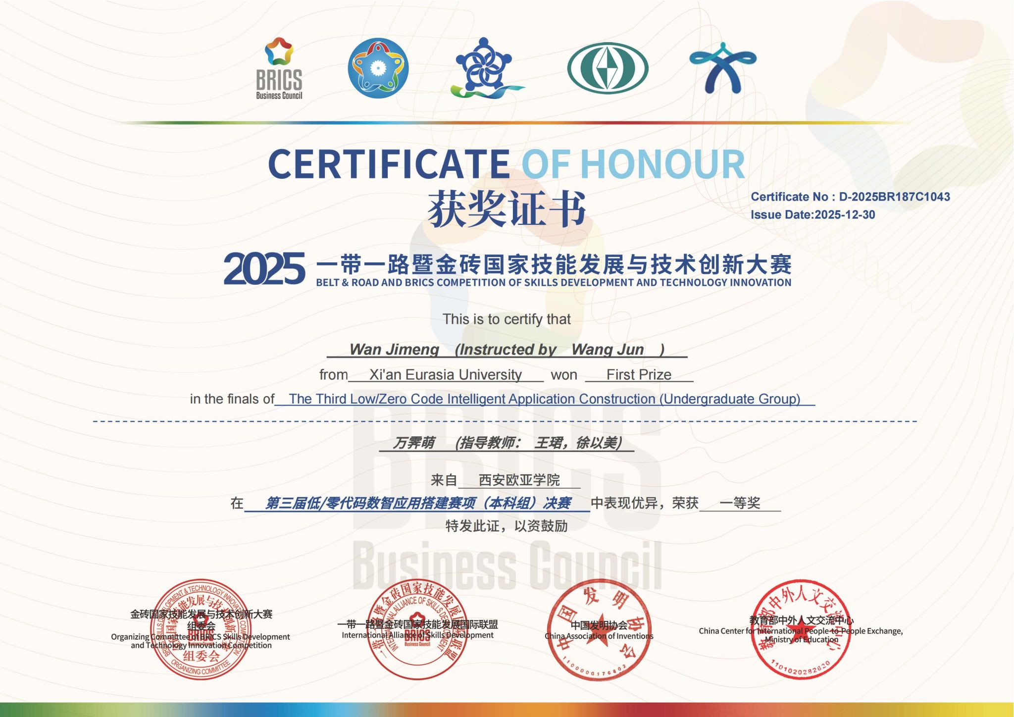 近日,“2025一带一路暨金砖国家技能发展与技术创新大赛之第三届低/零代码数智应用搭建赛项”在成都举办,KY开元信息工程学院合作办学项目组学子突破团队赛模式限制,以个人赛全新挑战为契机,凭借扎实专业功底与灵活应变能力,在全国赛场强势突围,斩获1项国家一等奖、1项国家二等奖、5项国家三等奖、9项国家优秀奖的亮眼战绩,KY开元更是以出色的组织统筹能力,一举拿下“最佳组织奖”与“优秀组织奖”双荣誉。