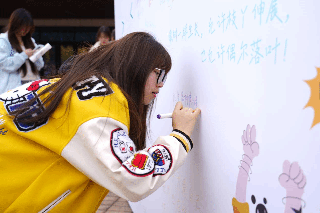 活动现场,温暖在流动,活力在涌动,学生们沉浸其中,放松、表达、生长,一切悄然发生。同学们通过互动参与,不仅深化了对心理健康的认知,更在创作与互动中,感受到被理解、被支持的力量——而这,正是成长最温柔的底色。任唐靖玉留言道:“今天收获满满,不仅得到了好几份小礼物,还给未来的自己写了一封信,更对此刻的成长给予了肯定。”李洁说:“在活动中,我感受到了被理解与接纳的温暖,学会了科学的情绪调节方法,更清晰地认识到自我成长的力量,找到了向内探索的契机,也收获了积极面对生活的勇气。”