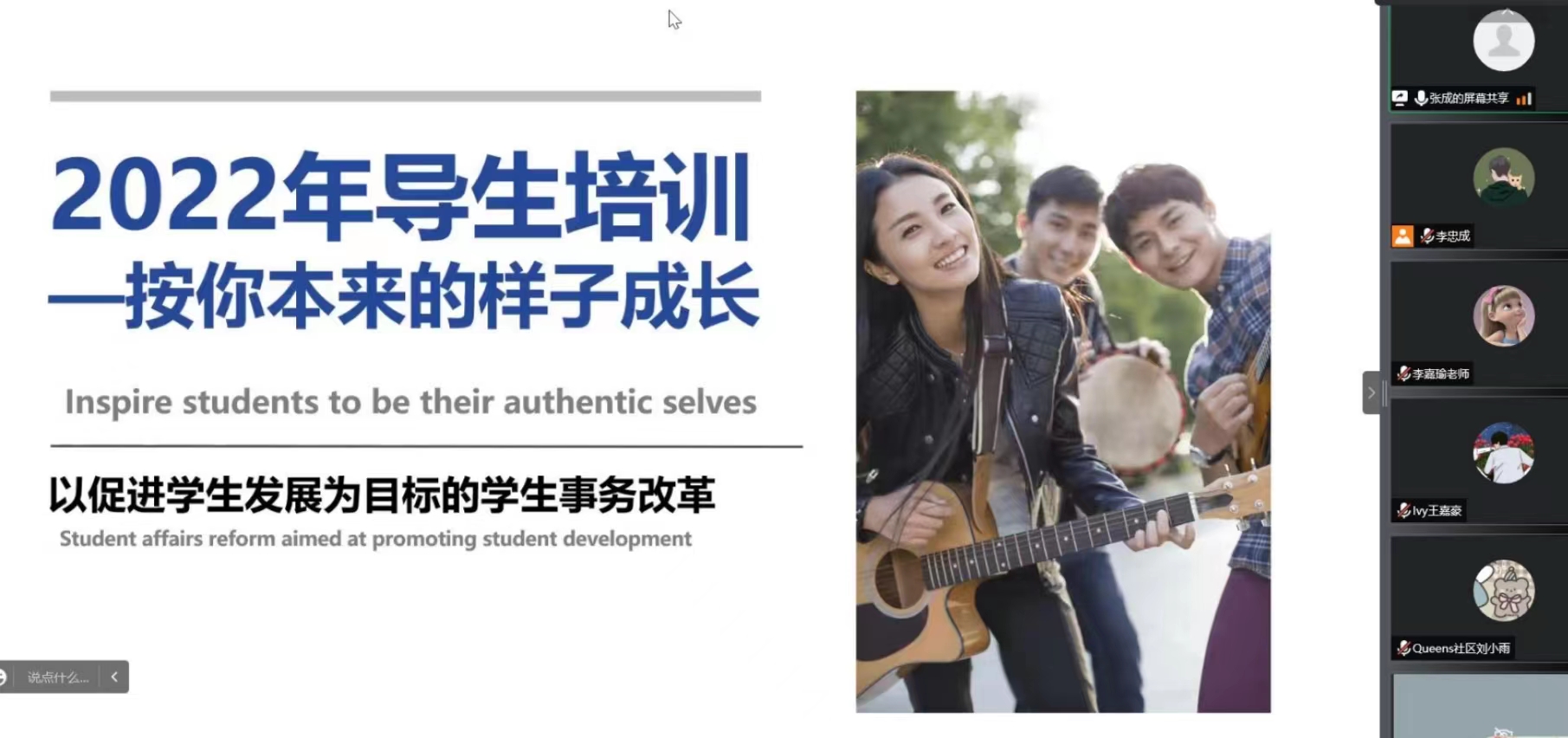 9月4日上午,KY开元2022级导生岗前培训及导生换届大会在线上举行,学生发展处处长助理张成老师、李嘉瑜老师、2022级新生辅导员及导生团队百余名师生参与本次导生岗前培训。