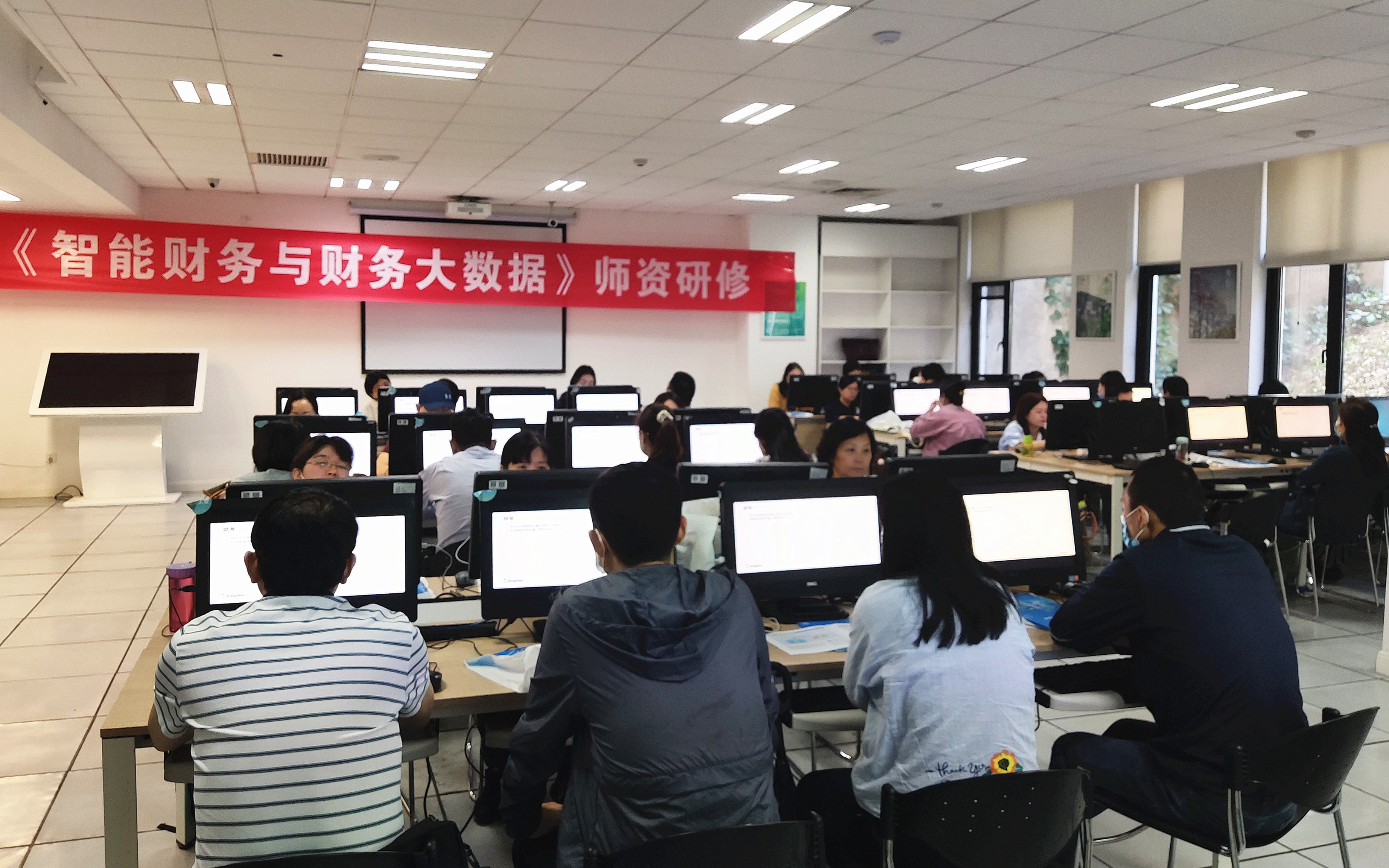 上午的师资研修内容为《智能财务实践教学课程》和《管理信息系统》,分别由金蝶精一的付仕伟博士和会计学院杨瑞、吴想老师进行培训。