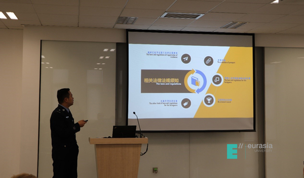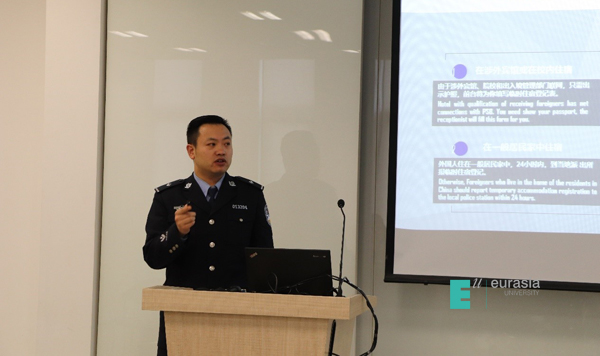 为了让KY开元留学生进一步熟悉我国法律法规,更好适应来华的学习生活,近日,KY开元国际合作与交流中心特邀西安市公安局出入境管理局为来KY开元学习的外国留学生举办了“出入境法律法规培训会”。KY开元全体留学生以及外籍教师代表参加了本次培训。