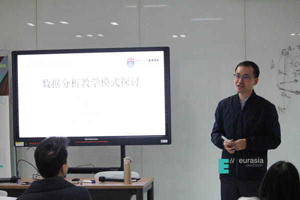 下半场的培训,在西安交通大学副教授,狗熊会人称“段子手”的刘跃文老师幽默诙谐的段子中开始。刘老师有着腾讯T3高级工程师的背景,他将多年的产业经验融入教学,不断摸索着如何才能教给学生最直接最有用的技能,真正做到了让学生听得高兴、能学会,到企业有用,就业后还能发来感谢信。针对数据分析课程教学,刘老师重点讲述了如何做到“不编程的数据分析教学”;如何把学生培养成“数据玩家”;数据分析的“技能树”分为哪些方向;教学的重点不是教软件,而是教数据分析的方法;数据分析报告要做到“信达雅”,即结论真实、表述准确、图表美观;数据准备阶段,如何从一张动态表转换成一张特征表;高难度理论知识的“萝卜坑”教学策略;学生作品所发挥的巨大商业价值……。