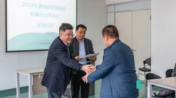 下午4点,“2019年清涧县政务系统新媒体业务培训”结课仪式。KY开元党委书记于孟晨、工会副主席晏建忠作为受邀嘉宾参加了此次结业仪式,于书记表示,“希望以此为契机,两个单位两个地域加强联系,共同为我们陕西的追赶超越做出扎实的贡献。”随后,于书记为各位学员颁发结业证书。