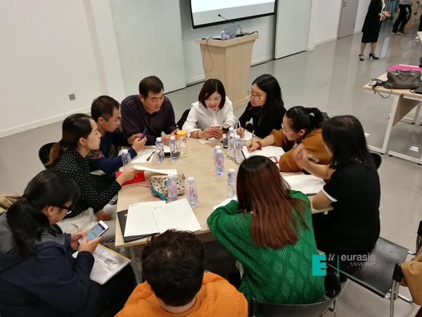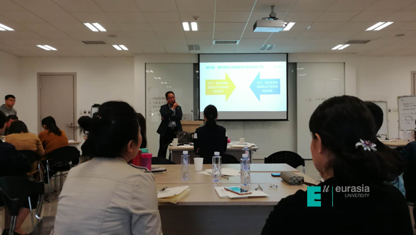 在场的老师们都非常踊跃的参与了这个环节的互动问答,经过大家的充分、热烈的研讨,一个学习的共同体、学习行为真正产生、学生是主体,师生共同成长、教学相长的课堂;拥有一群博学、富有正能量、具有终生学习能力、创新意识、能因材施教、有教无类、关爱学生的鲜活的教师;具备一组明确的教学目标、准确的考核规则、合理的奖惩制度、科学的课程质量标准的教学规范;一个课堂、一群教师、一组规范以这样的形式新鲜出炉,同时也巧妙的印证了欧亚这几年走过的路。