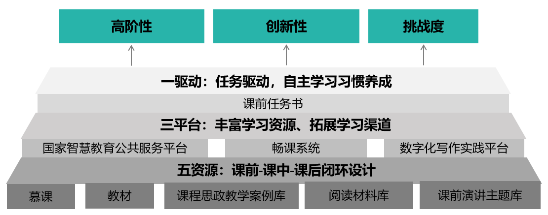 ② 建构“一驱动、三平台、五资源”的混合式教学模式