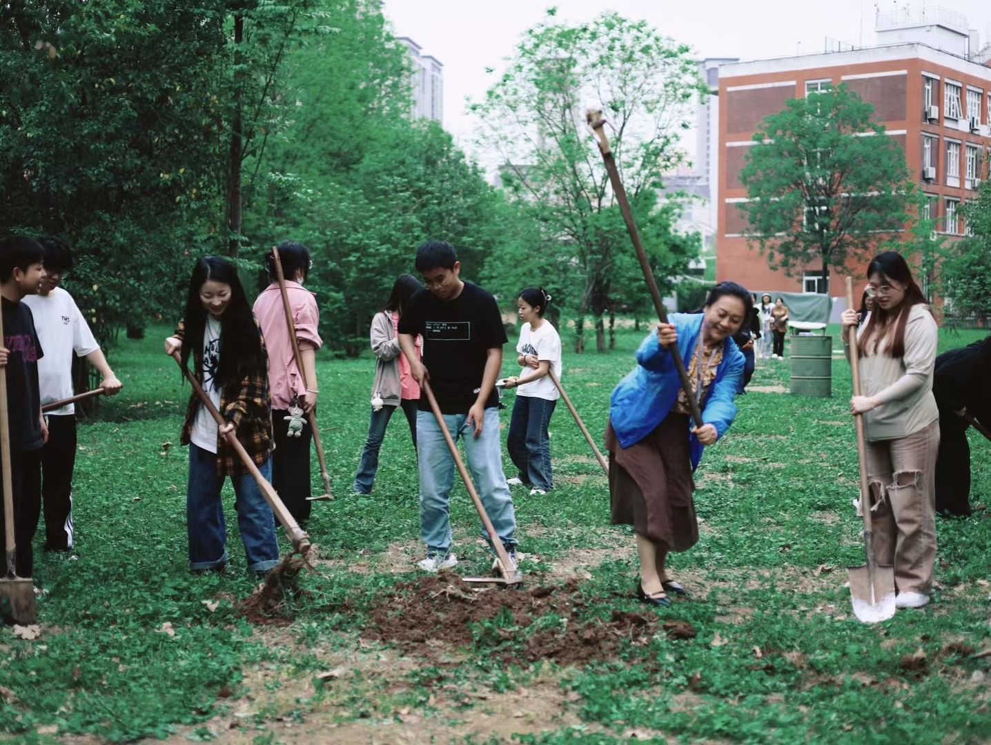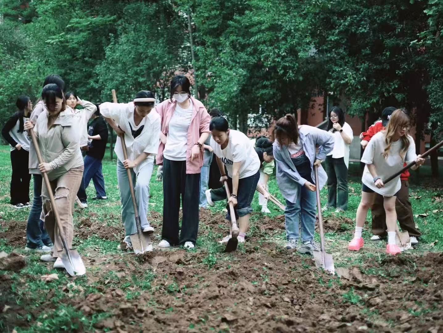 不同学科的老师带领学生们劳作