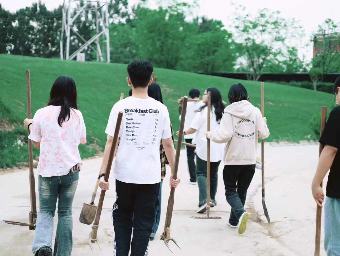 学生们去劳作的途中