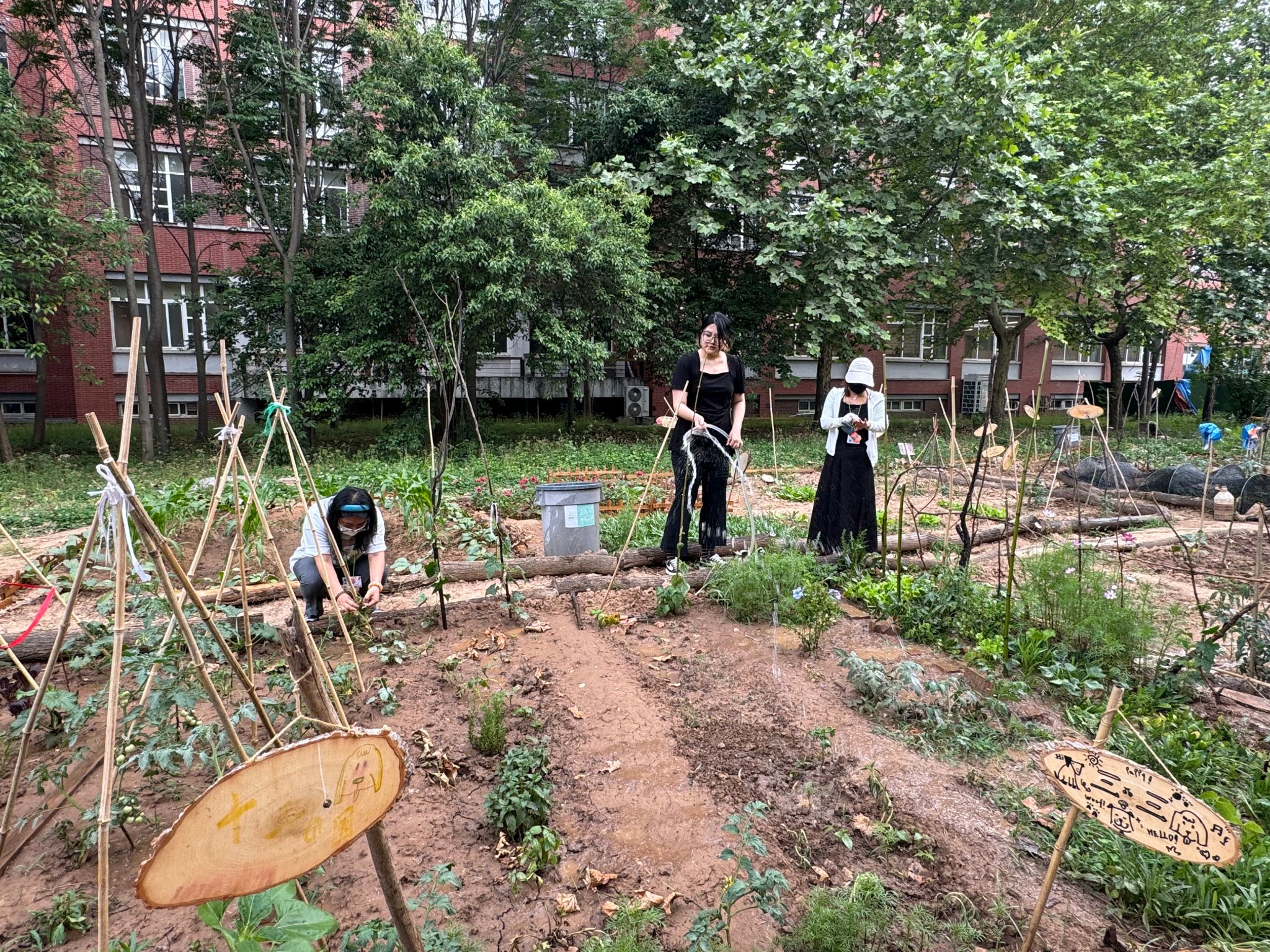 以专业审美打造香草园、用修剪的树枝创作装置艺术、建立厨余堆肥系统、观察昆虫、实地考察认识植物……艾德艺术设计学院、后勤集团、品牌传播部、图文信息中心的教师们纷纷为这片菜园贡献自己的一份力量。