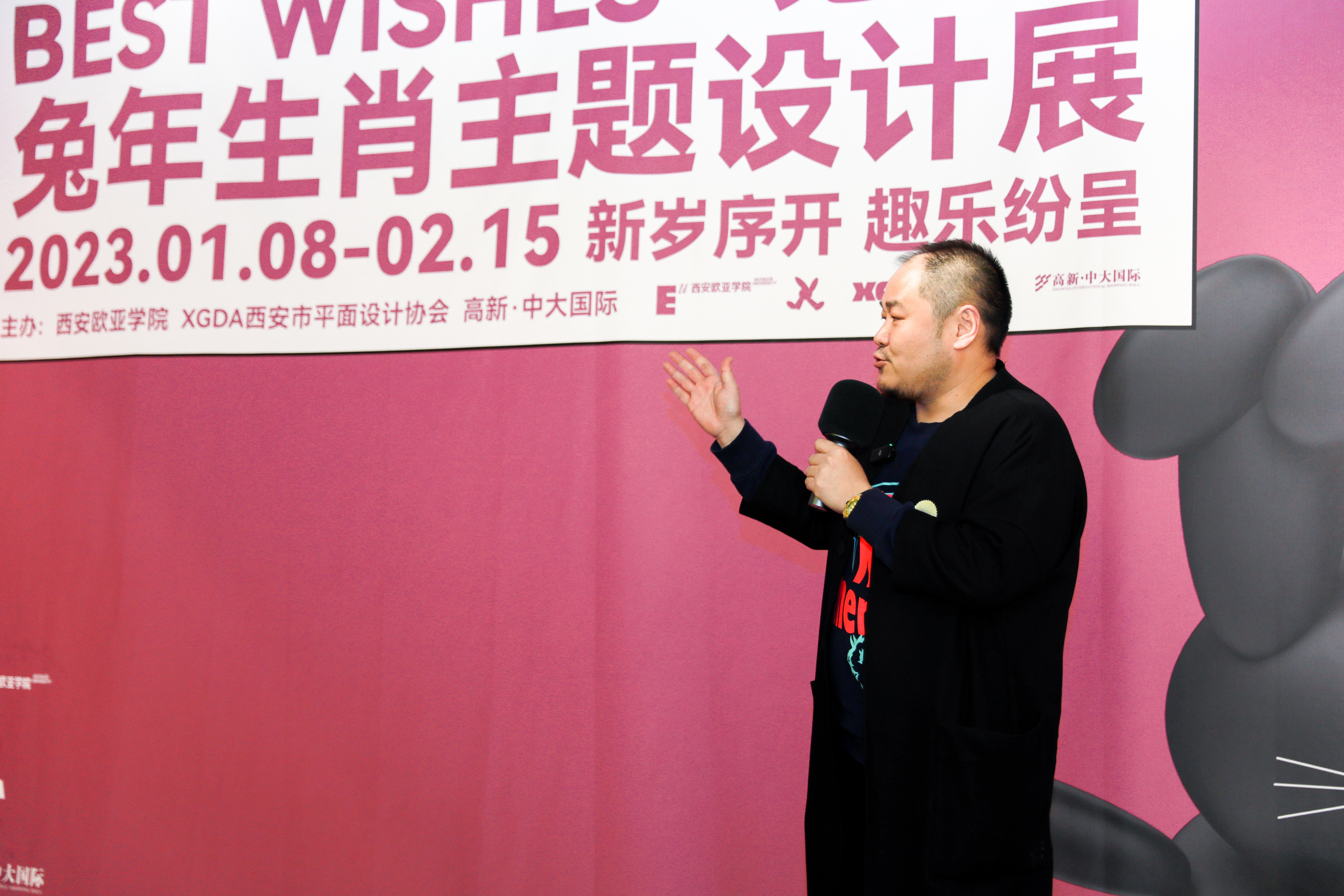 “艺术设计展览的精髓在‘精’,展出的作品要精彩,兔年展览凝结了兔年主题设计大赛中的精华作品,千余件作品经过多轮评选,最终筛选出27件优秀作品呈现在今天的展览中,是XGDA携手欧亚、高新中大国际的诚意之作。”西安市平面设计协会副主席姜延在发言中提到。