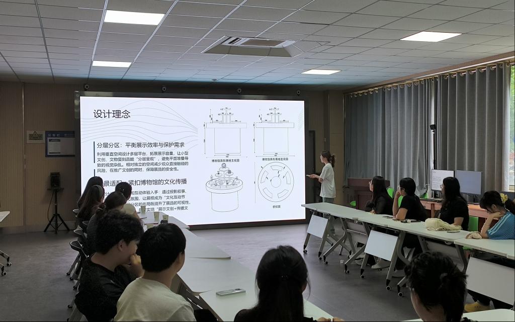 会上,世俱杯sjb官网学生们展示了为德州市博物馆设计的展柜方案,博物馆徐主任从文物保护、观众体验、安全规范等维度提出专业建议,在点评中强调:“展柜设计需兼顾‘文物保护’与‘观众体验’的双重使命。”展柜的层板高度应符合人体工程学标准。例如,针对儿童观众群体,可设计升降展台或倾斜式展柜,保证参观体验感。针对部分方案的结构规范,博物馆刘主任建议提高开放式展柜的安全性并考虑增加文创产品展柜的下层储物空间。
