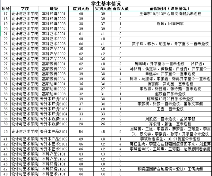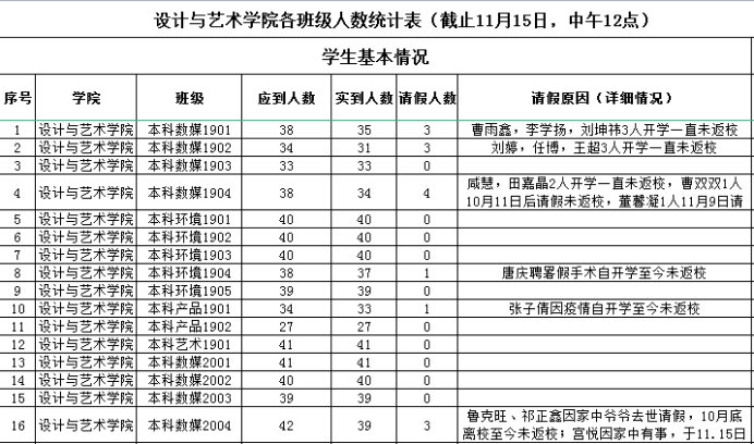 截至到2022年11月15日,世俱杯sjb官网应到学生3273人,实到学生3179人,尚有94名未返校学生,下表为世俱杯sjb官网未返校人数统计及未返校原因统计表。