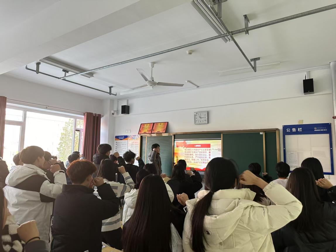 各团支部积极响应,高效组织。活动筹备期间,各团支部制定详细周全的计划并迅速行动,有条不紊地安排活动流程。活动当天,在团支部负责人的带领下,同学们整齐列队,现场庄严肃穆。首先进行的是重温入团誓词环节,同学们右手握拳,高举过肩,以洪亮且坚定的声音宣读誓词。一字一句,饱含着对共青团组织的忠诚以及身为团员的自豪,在校园的上空久久回荡,强化了每位同学对团员身份的深刻认同与强烈责任感。紧接着,全体同学齐唱团歌。激昂奋进的旋律响起,同学们精神抖擞,歌声铿锵有力,将对共青团的热爱与为团组织贡献力量的决心融入到每一个音符之中,集体仪式感被推向高潮。这一活动营造了庄重浓厚的集体仪式氛围,进一步拉近了同学们之间的距离,增强了彼此的信任与默契,全方位提升了青年群体的凝聚力,为团支部后续开展各项活动奠定了坚实基础。
