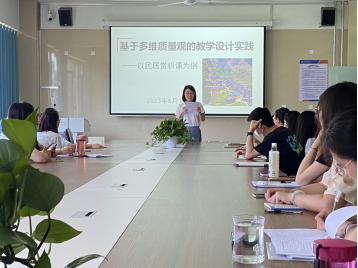 王磊教授先从国家政策角度出发,介绍了国家出台的有关教育领域的政策。然后从不同学校发展情况来介绍何为多维教育观,帮助年轻老师了解多维质量观的教育观念。最后,王磊教授结合《民居赏析》课程直观地向老师们展示了基于多维质量观的课程教学设计。