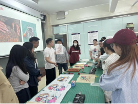 学院科研科国林恺老师为本次活动宣讲员。活动中,国老师向师生介绍了杨家埠木版年画的历史,细致讲述了非遗传承人杨洛书先生的传承故事。以杨家埠传统年画为案例,分析木版年画的艺术风格和题材特点。又通过木版年画印刷过程的影像资料生动形象地展示了木版年画套色印刷技艺的独特魅力。本次活动邀请学生亲身体验木板转印的过程和学校相关建筑主题的套色印章。最后,国老师为参加活动的学生送出美好寄语——以设计为抓手,架起传统文化与现代社会的桥梁,以传统文化为沃土,绽放创新与传承之花。