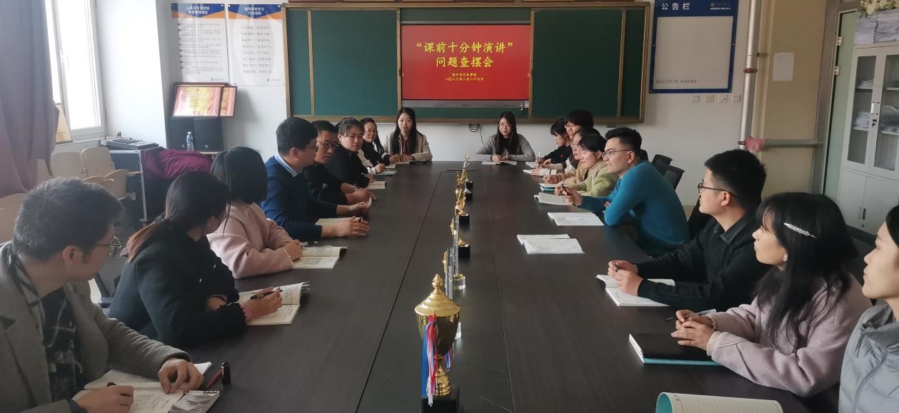 为帮助学生尽快进入常态化学习状态,发现各班级在组织“课前十分钟演讲”活动过程中的问题,学院于2023年3月27日在22号楼309召开“课前十分钟演讲”活动问题查摆会,全体学生管理人员参加本次会议。