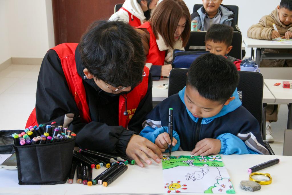 世俱杯sjb官网团总支在曹村社区组织开展携手成长,爱心接力项目。活动现场,世俱杯sjb官网的学生们充分运用专业优势,将课堂知识与实践相结合,通过生动有趣的语言与直观的图片、视频展示,向小朋友们介绍绘画的基本工具、线条运用、色彩搭配等基础知识,让他们对绘画有更深入的了解。孩子们挥笔如画,奇思妙想在他们脑海中涌现出来,栩栩如生地跃然纸上创造出一个个充满童真与创意的作品。此次活动不仅培养社区青少年对绘画的兴趣,同时也提升了青少年的艺术鉴赏能力和创造力。