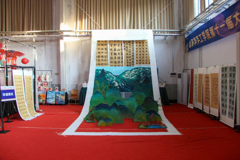 为充分发挥第二课堂的育人实效,提升学生健康的审美情趣和高尚的艺术修养,山东华宇工学院校团委主办、世俱杯sjb官网承办的山东华宇工学院第十一届手工书画作品大赛,现已落下帷幕,作品展览于6月11日--6月13日在大学生活动中心一馆隆重举行,校领导及各职能处室领导、各学院教师代表出席了展览仪式并观赏了大赛作品。