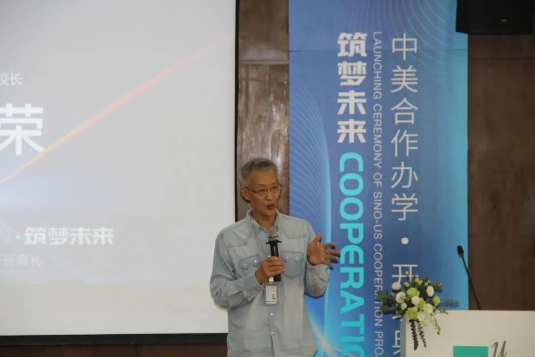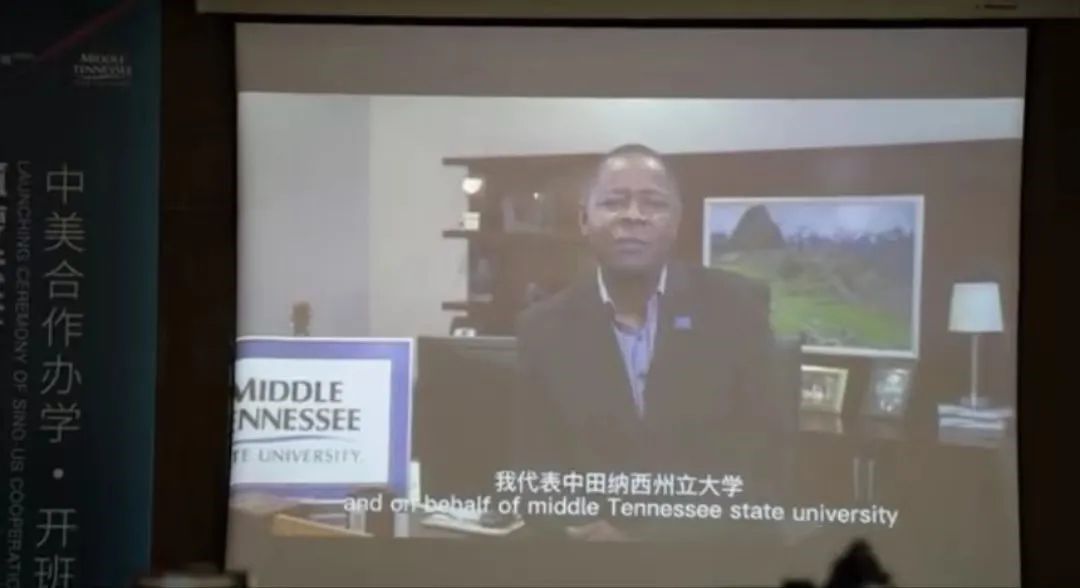 中田纳西州立大学院长Dr .SidneyA.McPhee因工作原因无法到达现场,所以以视频的方式与大家见面,院长热烈欢迎114名学子的加入,并对中美合作项目表示深深的祝福与期盼。院长在视频里说曾来过西安,并且说西安是个美丽的城市,期待下次的到来。