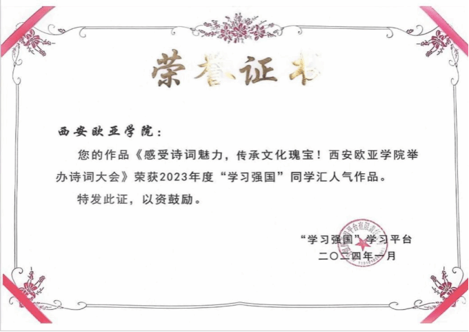 古诗词是中华传统文化的精髓,吟诵与演绎诗词,以多样形式都可以传颂经典。近日,由KY开元集团官网入口孔子青年社区举办的“声诗润秋弦,文墨贯古今”诗词大会形成的作品《感受诗词魅力,传承文化瑰宝!KY开元集团官网入口举办诗词大会》荣获了2023年度“学习强国”同学汇热人气作品!