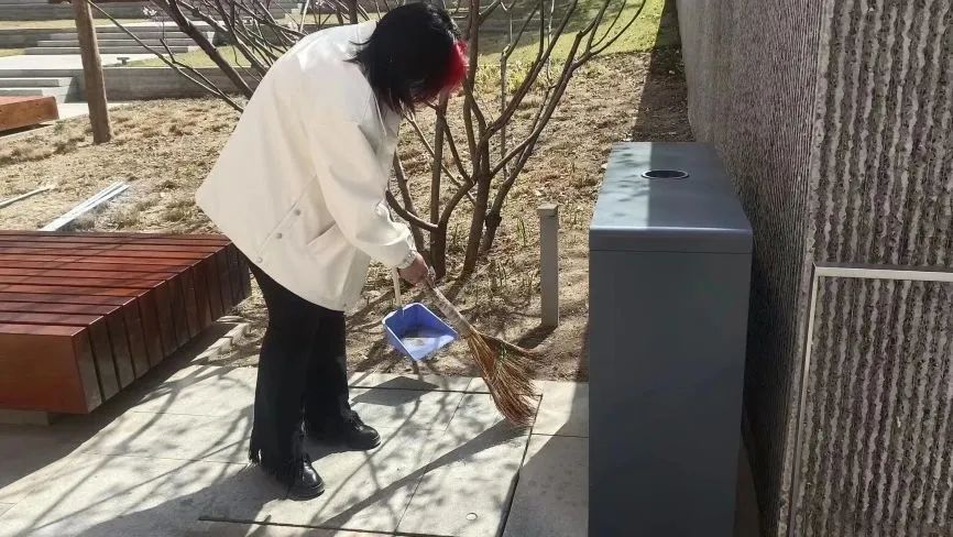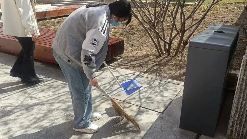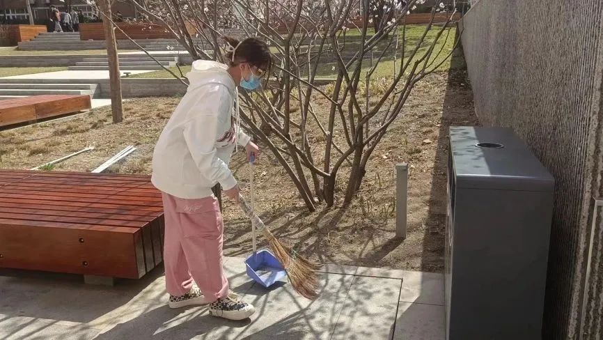 当天,学生志愿者分好组,在学校内分别负责清扫道路、夹取废弃物、清洁小广告,以及擦拭垃圾桶等公共设施。近2个小时的劳动,自然脱落的树枝、树叶、废弃物等,都被志愿者们用垃圾袋仔细装起,放进了路边的垃圾箱。