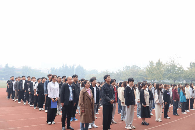 在激昂的国歌声中,五星红旗冉冉升起,全体师生向飘扬的五星红旗行注目礼。此刻,他们心中充满了对祖国的崇敬与自豪。