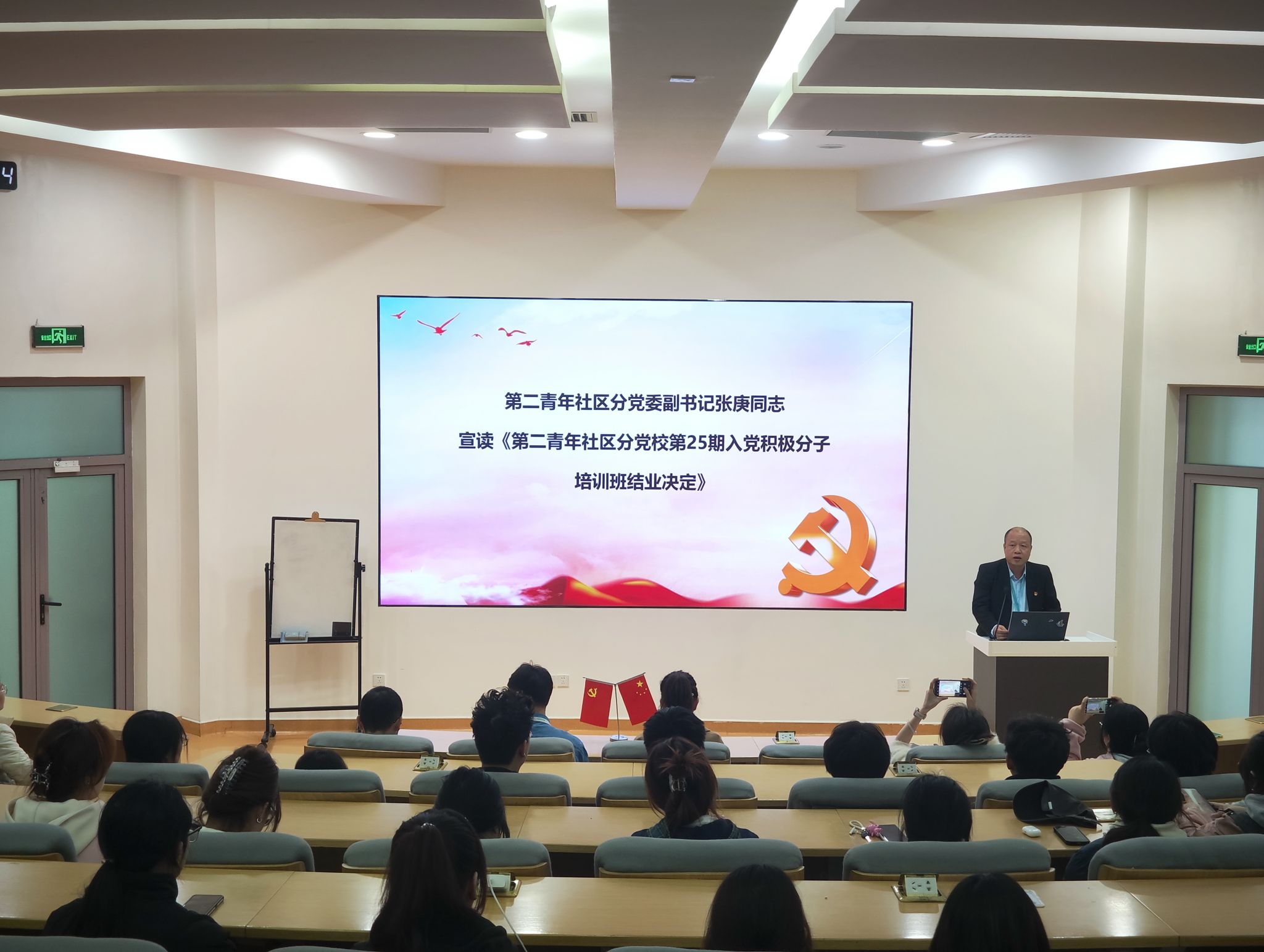 为了紧跟时代脉搏,深化对习近平新时代中国特色社会主义思想的领悟,并全面提升入党积极分子的思想境界与党性修养。2024年11月19日,第二青年社区分党委在西C-001举行第25期入党积极分子结业典礼,出席典礼的有第二青年社区分党委书记、分党校校长白利宁同志,副书记张庚同志,分党委组织委员王雪辰同志,分党委青年委员陈惺惺同志,各学生支部书记以及99名入党积极分子。