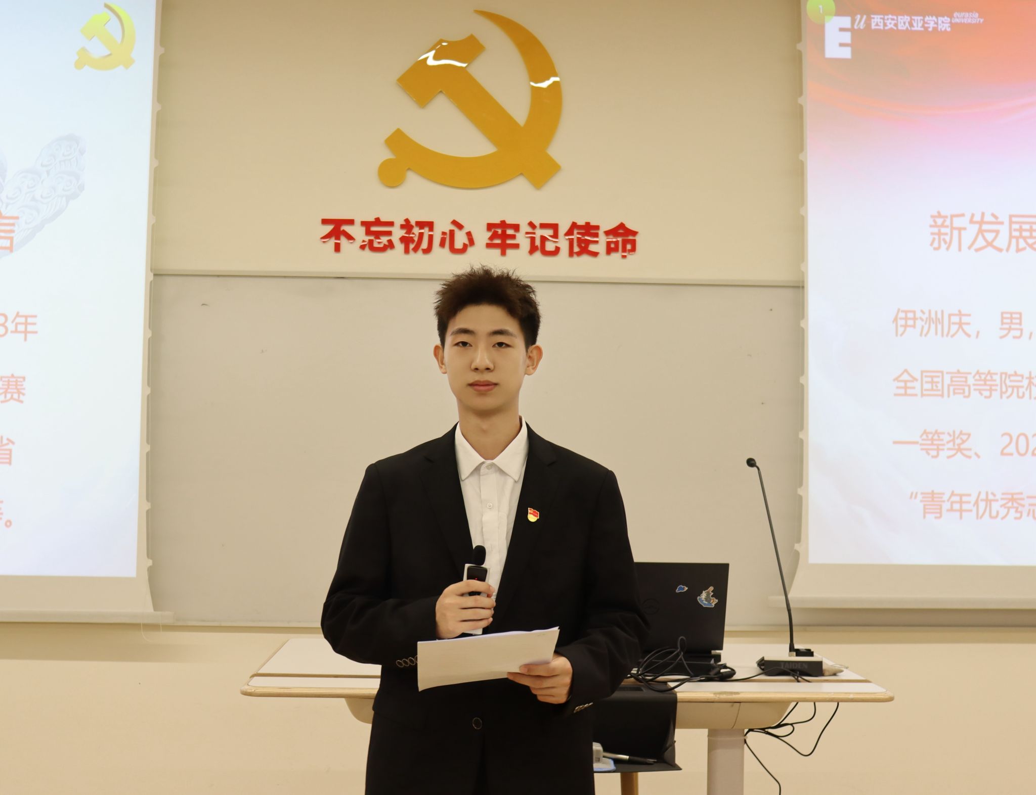 大会第五项:学生第七党支部伊洲庆同志代表新发展党员发表。