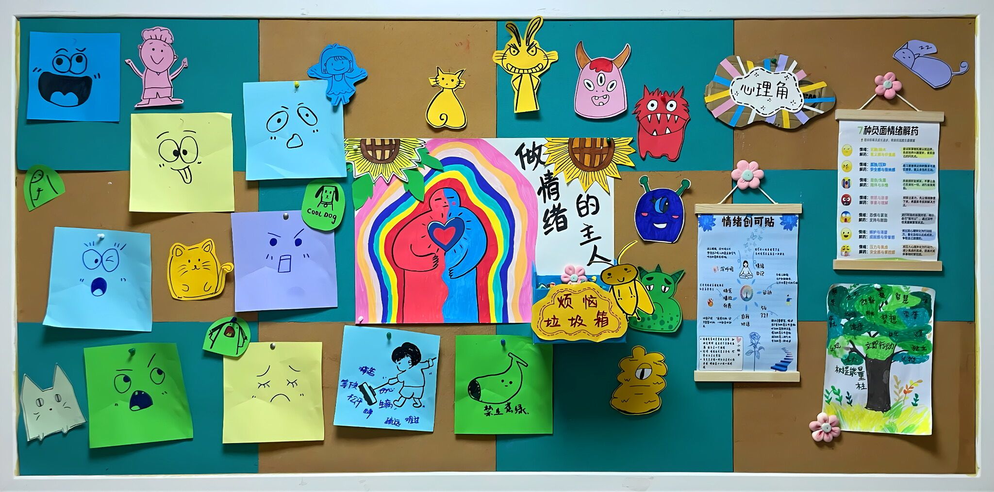 另一方面,心理角引导学生接纳自我情绪,鼓励学生通过情绪烦恼箱等形式关心他人,充分发挥学生朋辈作用,引导学生更好的应对心理“感冒”。同学们会将自己的心理状态写成标签,粘贴到心理角,与其他同学进行互动,减轻个人压力。
